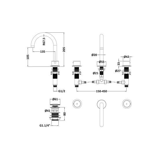 Windon Deck Mounted 3 Tap Hole Basin Mixer With Pop Up Waste