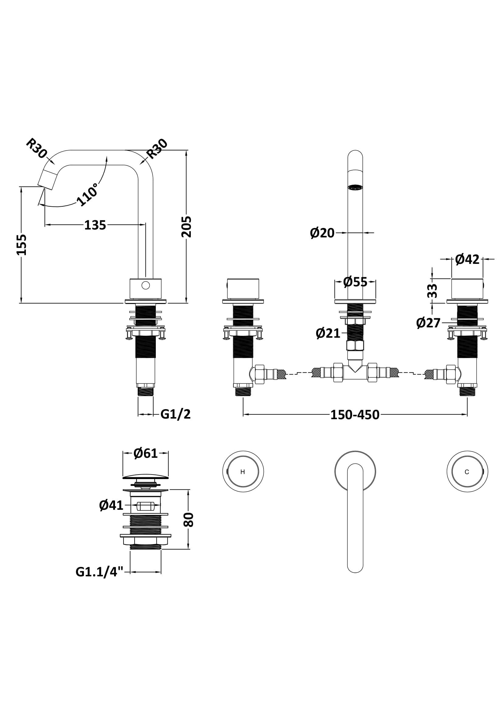 Windon Deck Mounted 3 Tap Hole Basin Mixer With Pop Up Waste