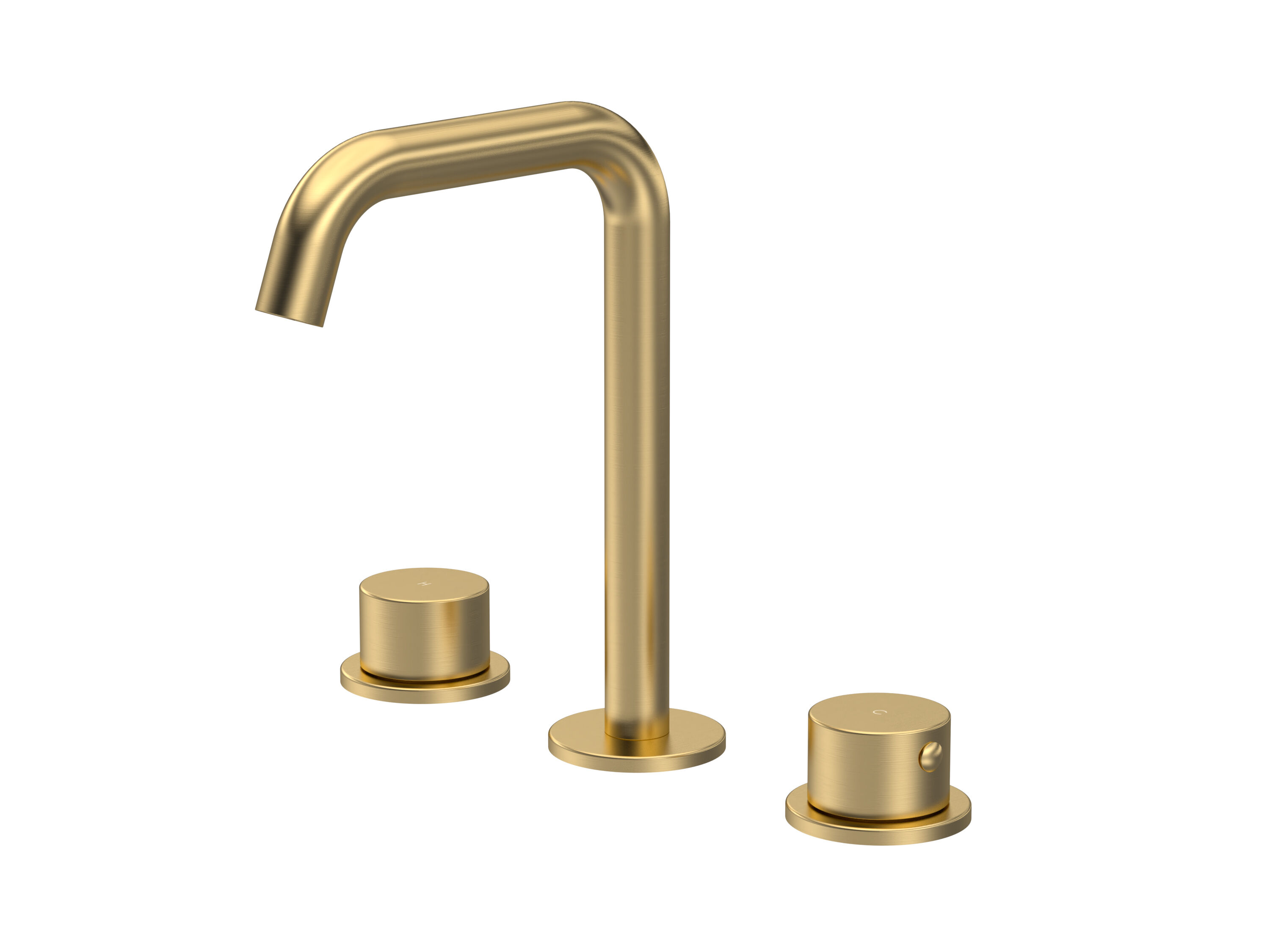 nuie Lux Steeple 3 Tap Hole Basin Mixer (P Spout) With Push Button Waste - Brushed Brass