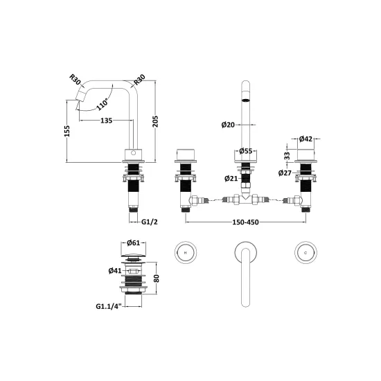 Windon Deck Mounted 3 Tap Hole Basin Mixer With Pop Up Waste