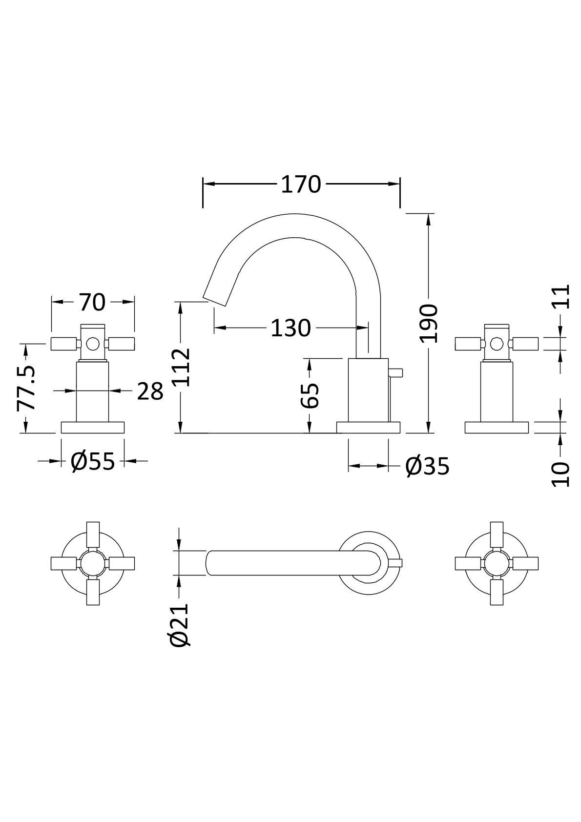 Hudson Reed Tec Crosshead 3 Tap Hole Basin Mixer - Chrome