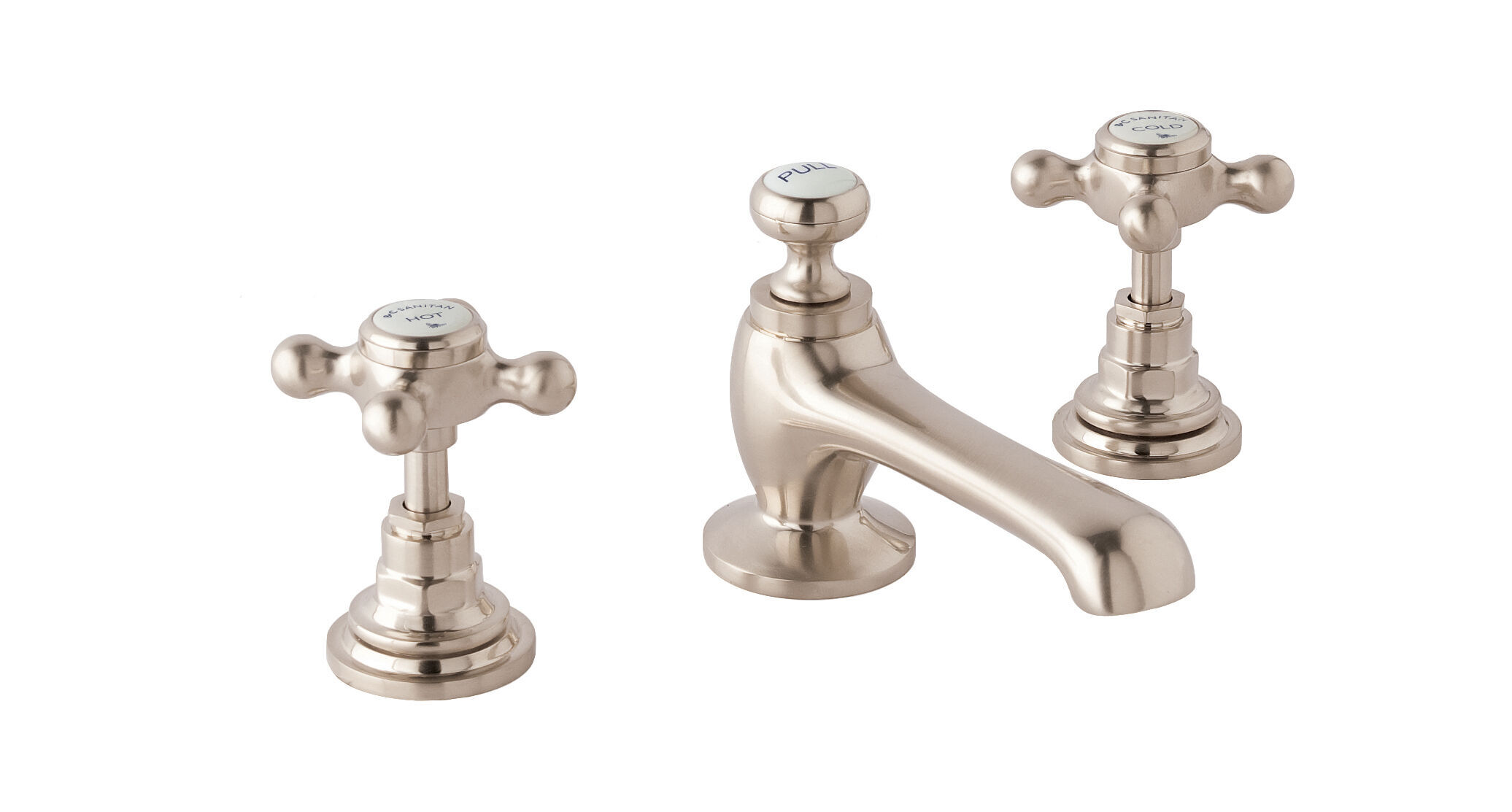 BC Sanitan Victrion Deck Mounted Crosshead 3 Tap Hole Basin Mixer Tap - Brushed Nickel