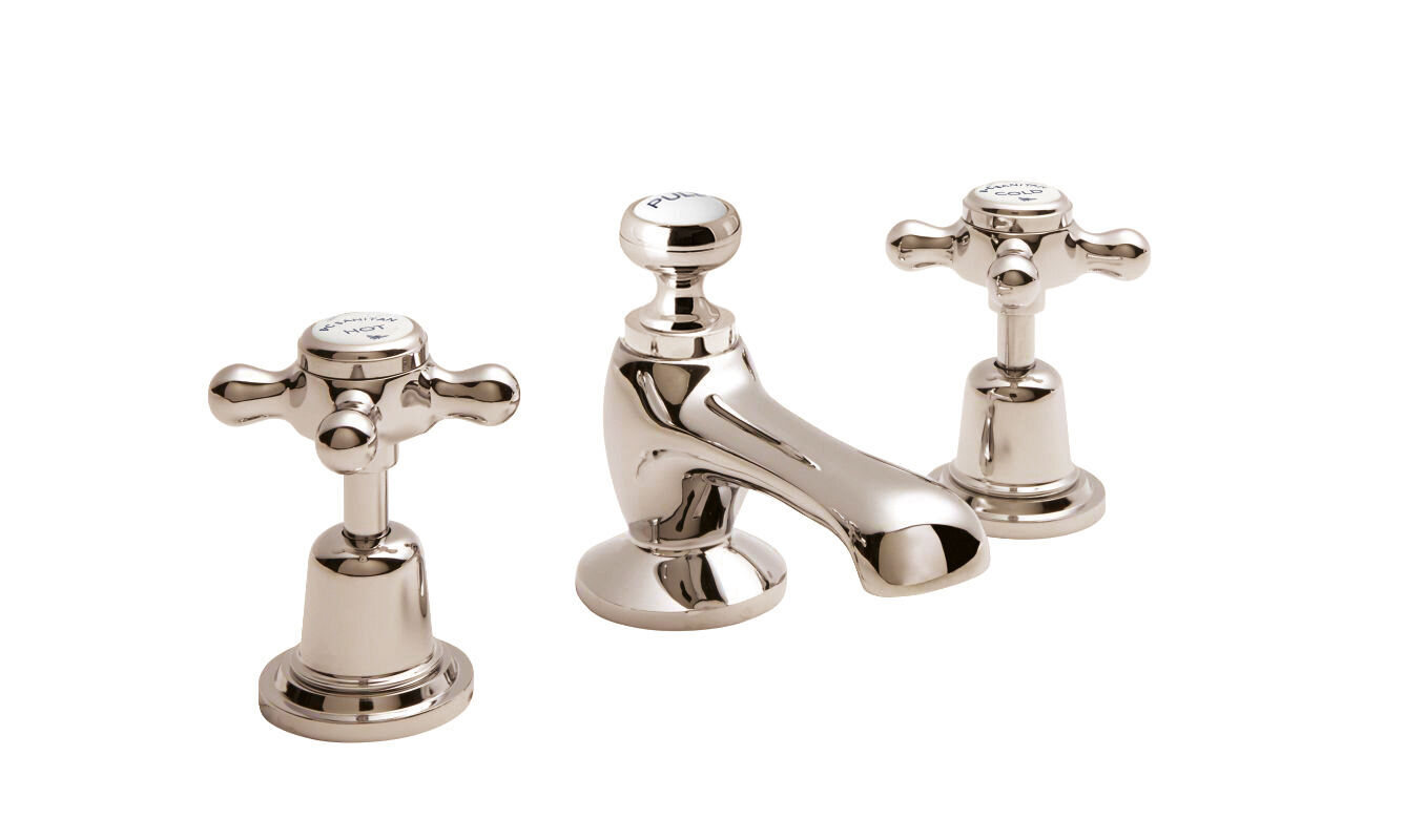 BC Sanitan Victrion Deck Mounted Crosshead 3 Tap Hole Basin Mixer Tap - Nickel