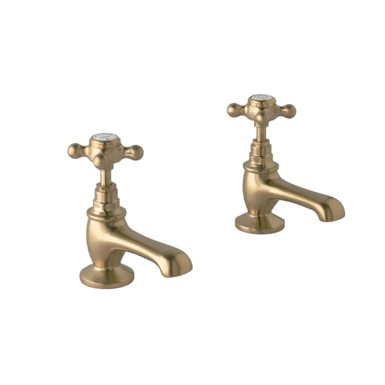 BC Sanitan Victrion Deck Mounted Crosshead Basin Pillar Taps - Brushed Brass