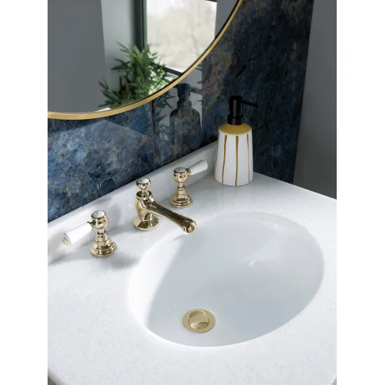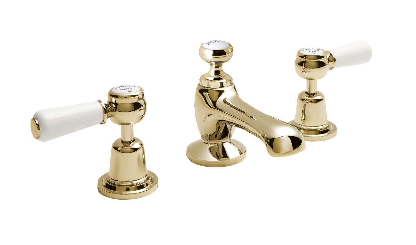 BC Sanitan Victrion Deck Mounted Lever 3 Tap Hole Basin Mixer Tap - Gold
