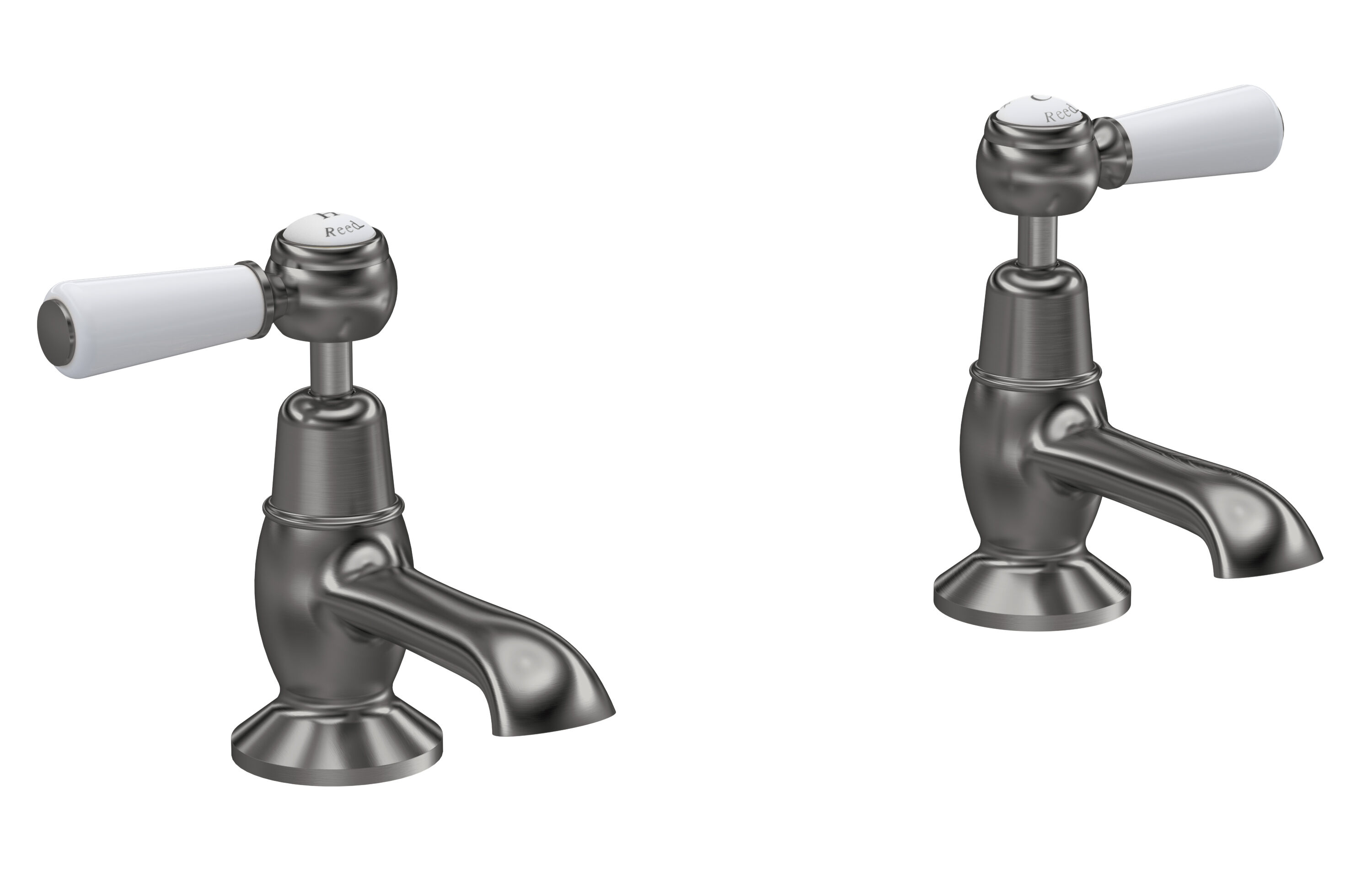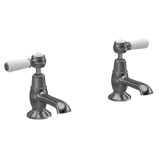 Old London White Topaz With Lever Handle Basin Taps - Brushed Pewter / White