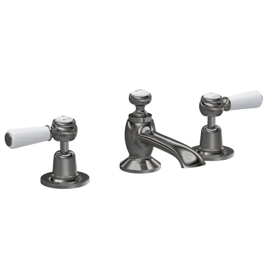 Old London White Topaz With Lever Handle 3 Tap Hole Basin Mixer - Brushed Pewter / White