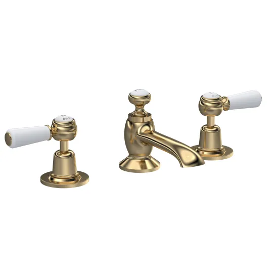 Old London White Topaz With Lever Handle 3 Tap Hole Basin Mixer - Brushed Brass / White