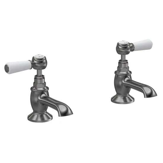 Old London White Topaz With Lever Handle Basin Taps - Brushed Pewter / White