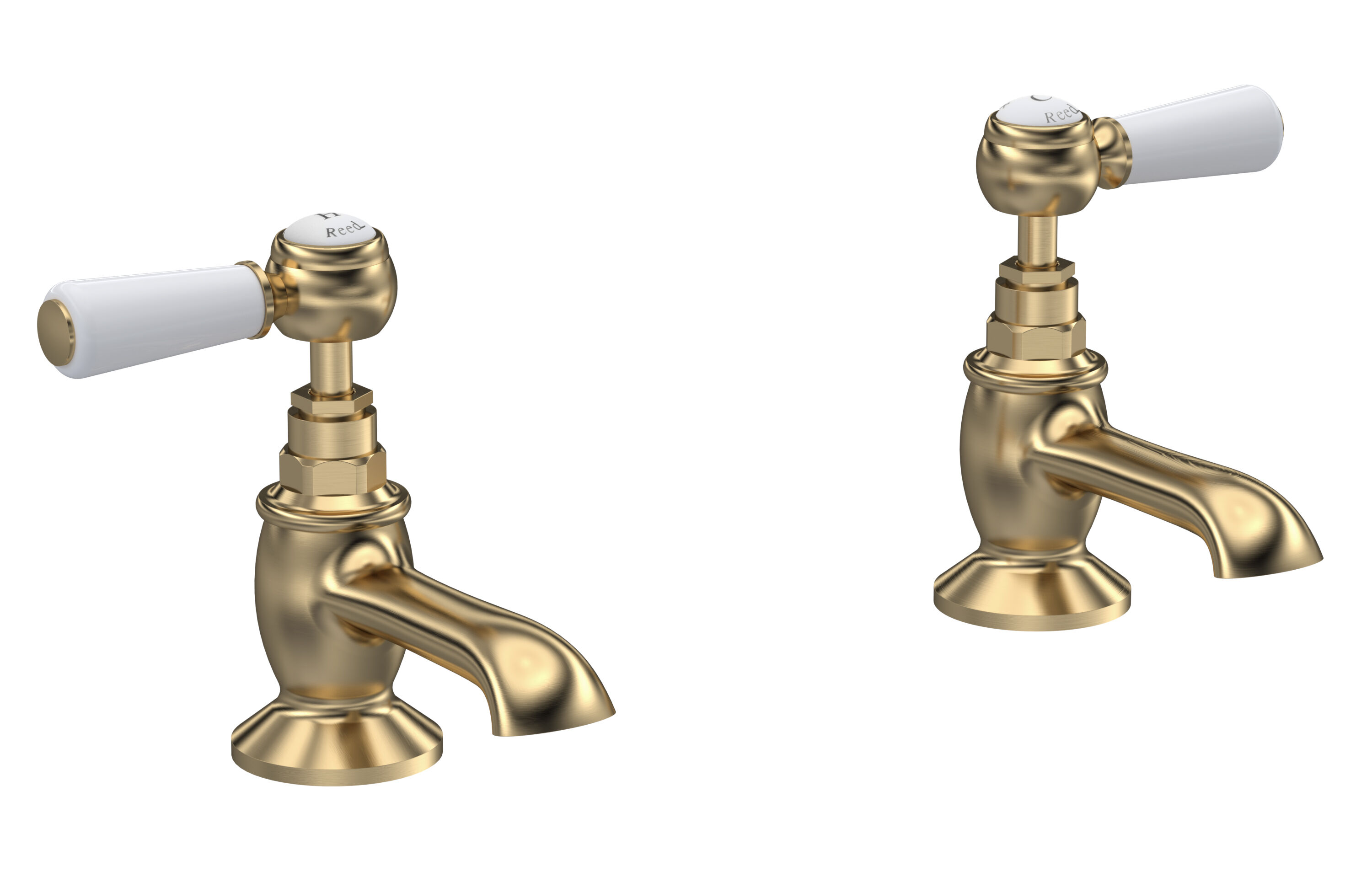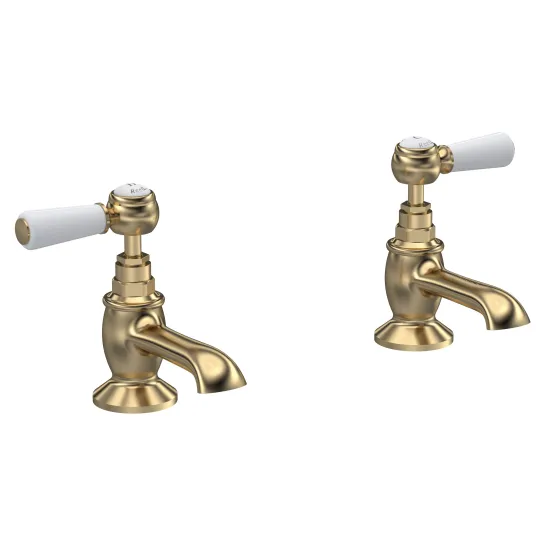 Old London White Topaz With Lever Handle Basin Taps - Brushed Brass / White