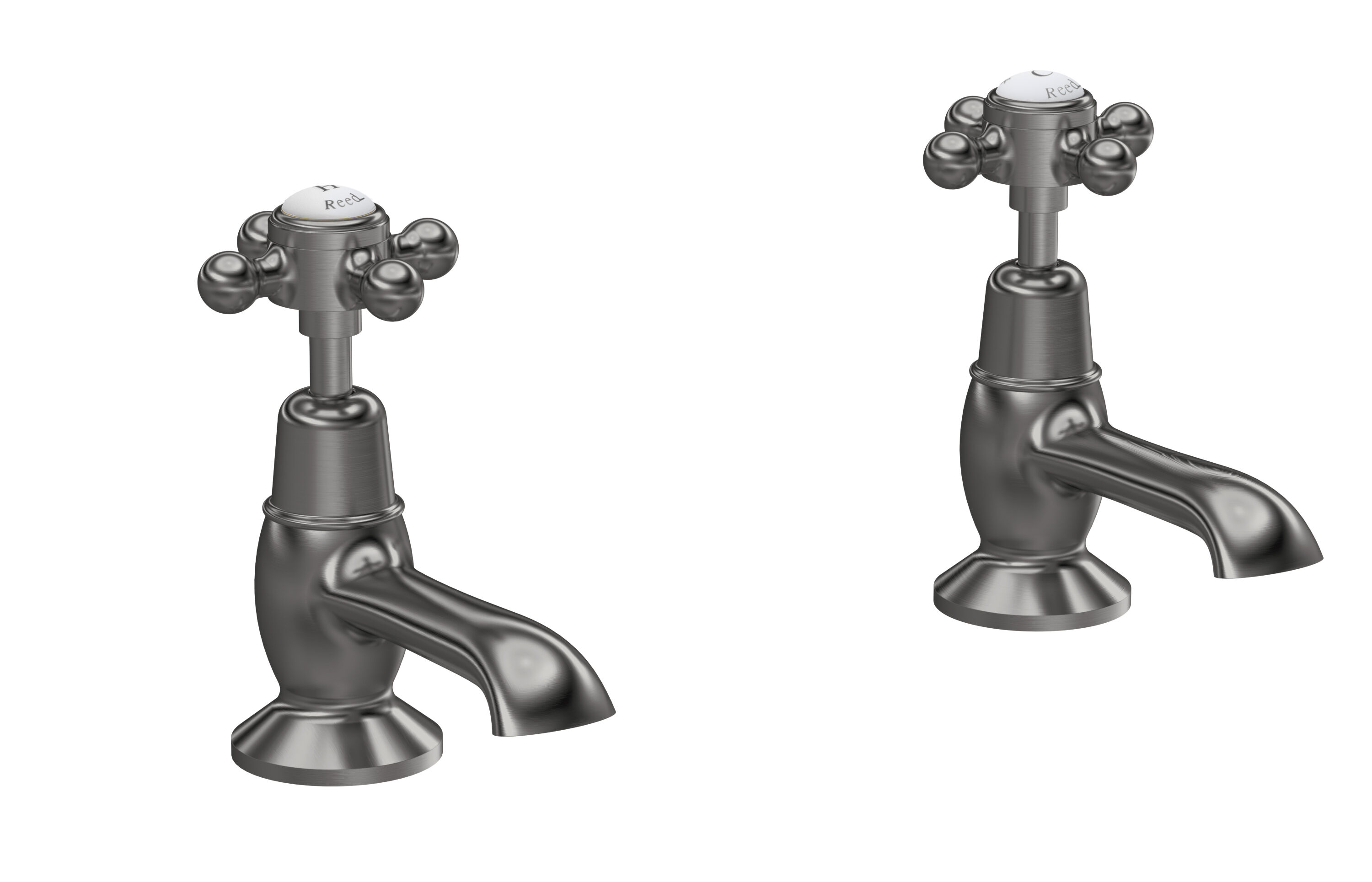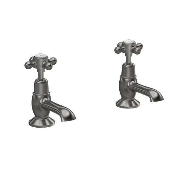 Old London White Topaz With Crosshead Handle Basin Taps - Brushed Pewter / White