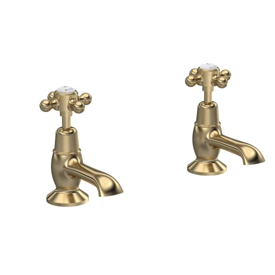 Old London White Topaz With Crosshead Handle Basin Taps - Brushed Brass / White