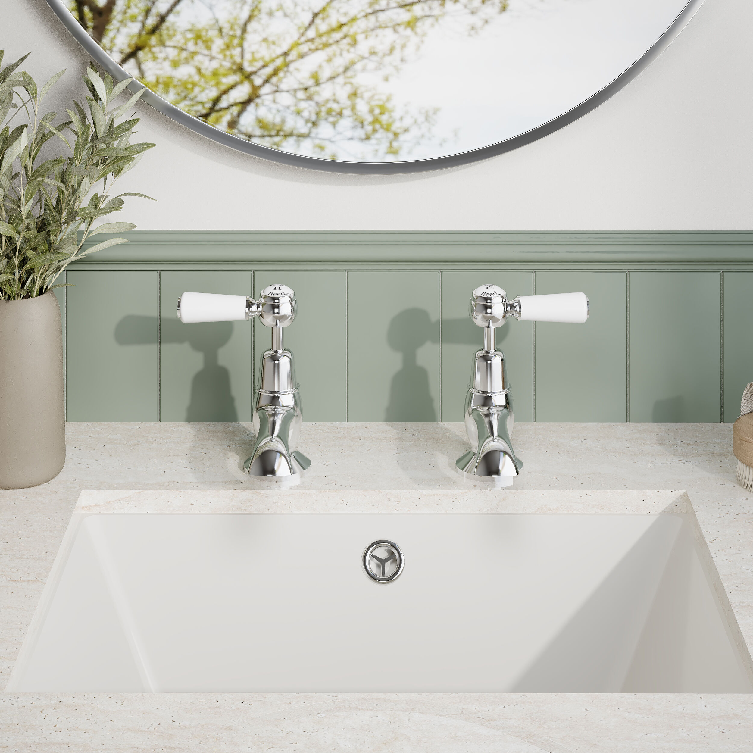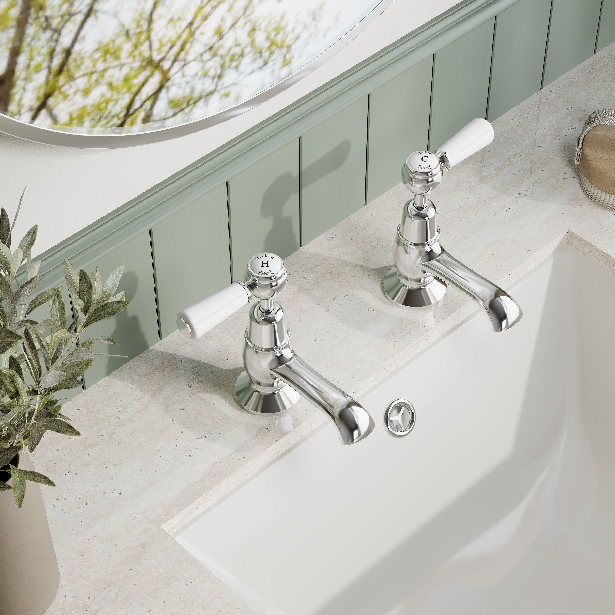 White Topaz With Lever Handle 3 Tap Hole Basin Mixer