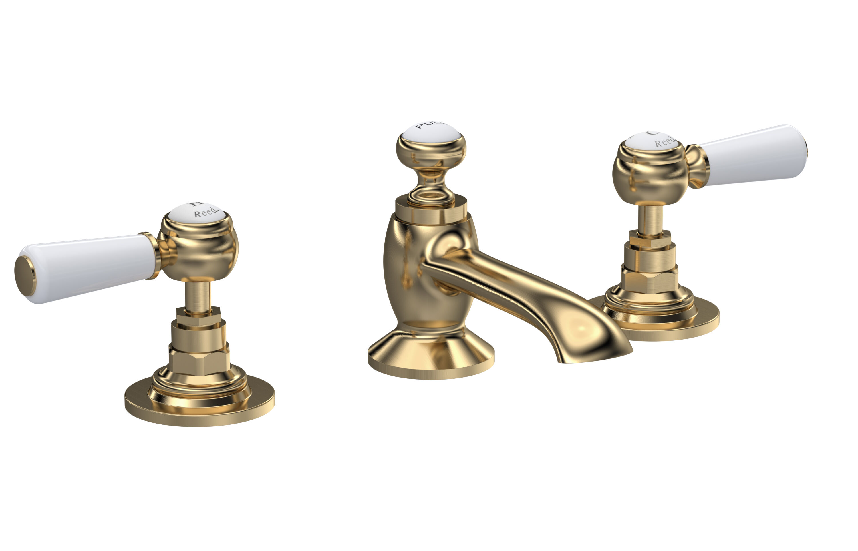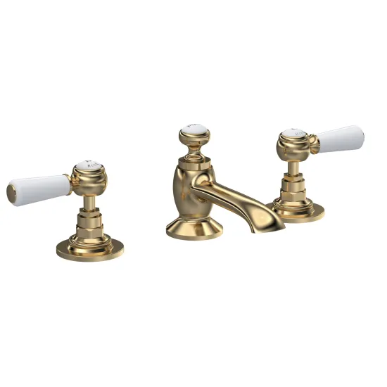 Old London White Topaz With Lever Handle 3 Tap Hole Basin Mixer - Brushed Brass / White