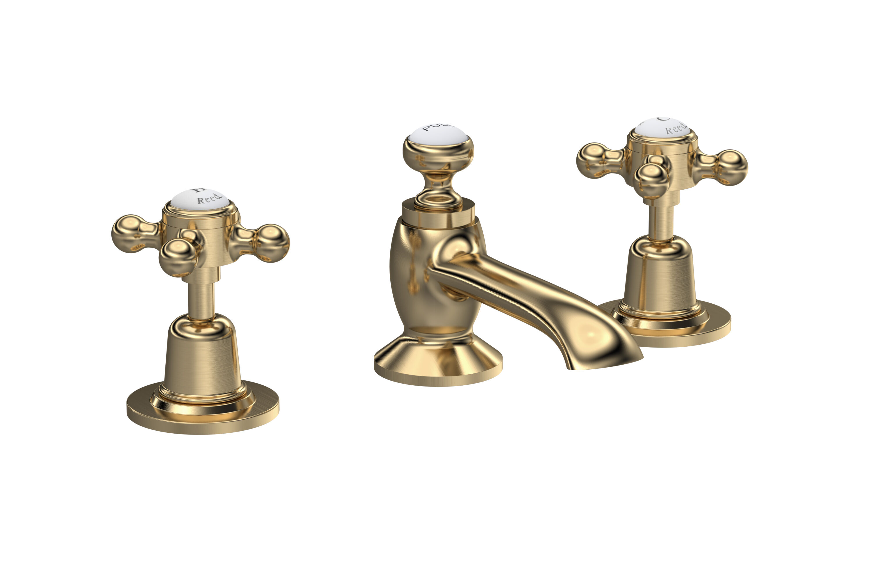 Old London White Topaz With Crosshead Handle 3 Tap Hole Basin Mixer - Brushed Brass / White