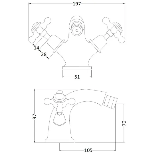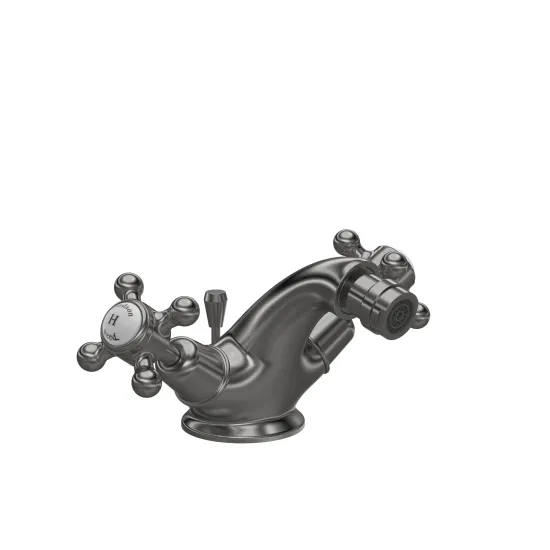 Old London White Topaz With Crosshead Handle Bidet Tap - Brushed Pewter