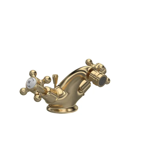 Old London White Topaz With Crosshead Handle Bidet Tap - Brushed Brass