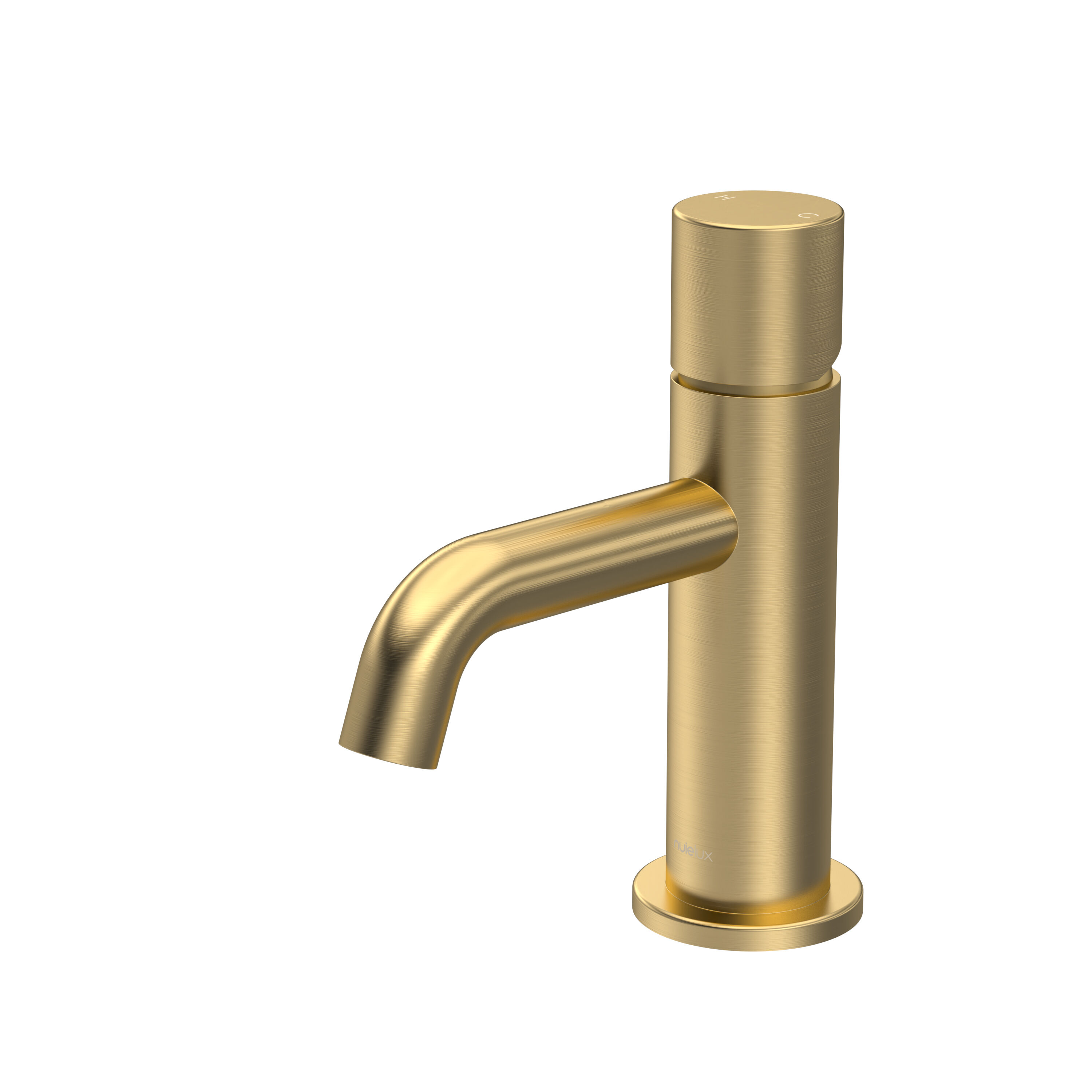 nuie Lux Steeple Mini Mono Basin Tap With Push Button Waste - Brushed Brass