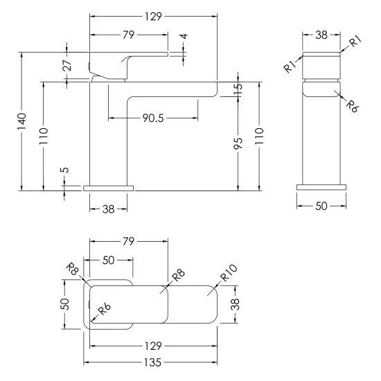 nuie Windon Mini Basin Mixer With Push Button Waste - Chrome