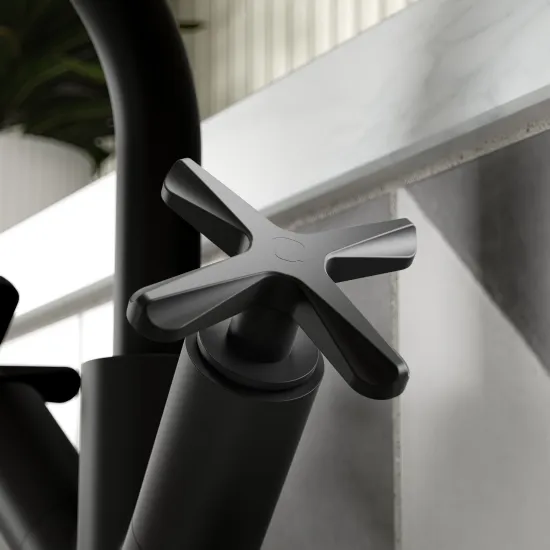 nuie Aztec Deck Mount Mono Basin Mixer Tap with Push Button Waste - Matt Black