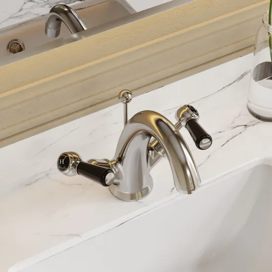 Black Topaz With Lever Handle Basin Taps