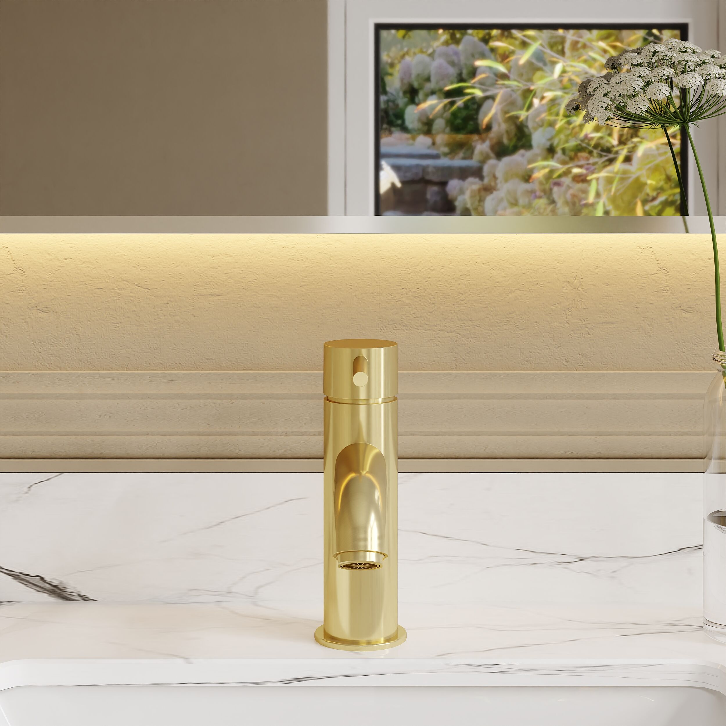 nuie choice Cartegena Mono Basin Mixer With Push Button Waste - Brushed Brass