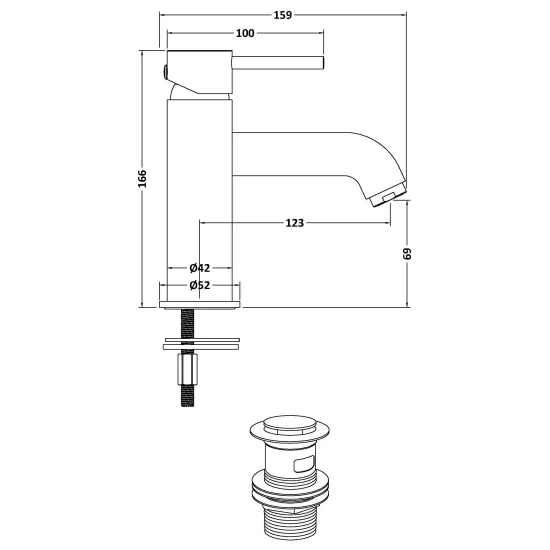Cartegena Mono Basin Mixer With Push Button Waste