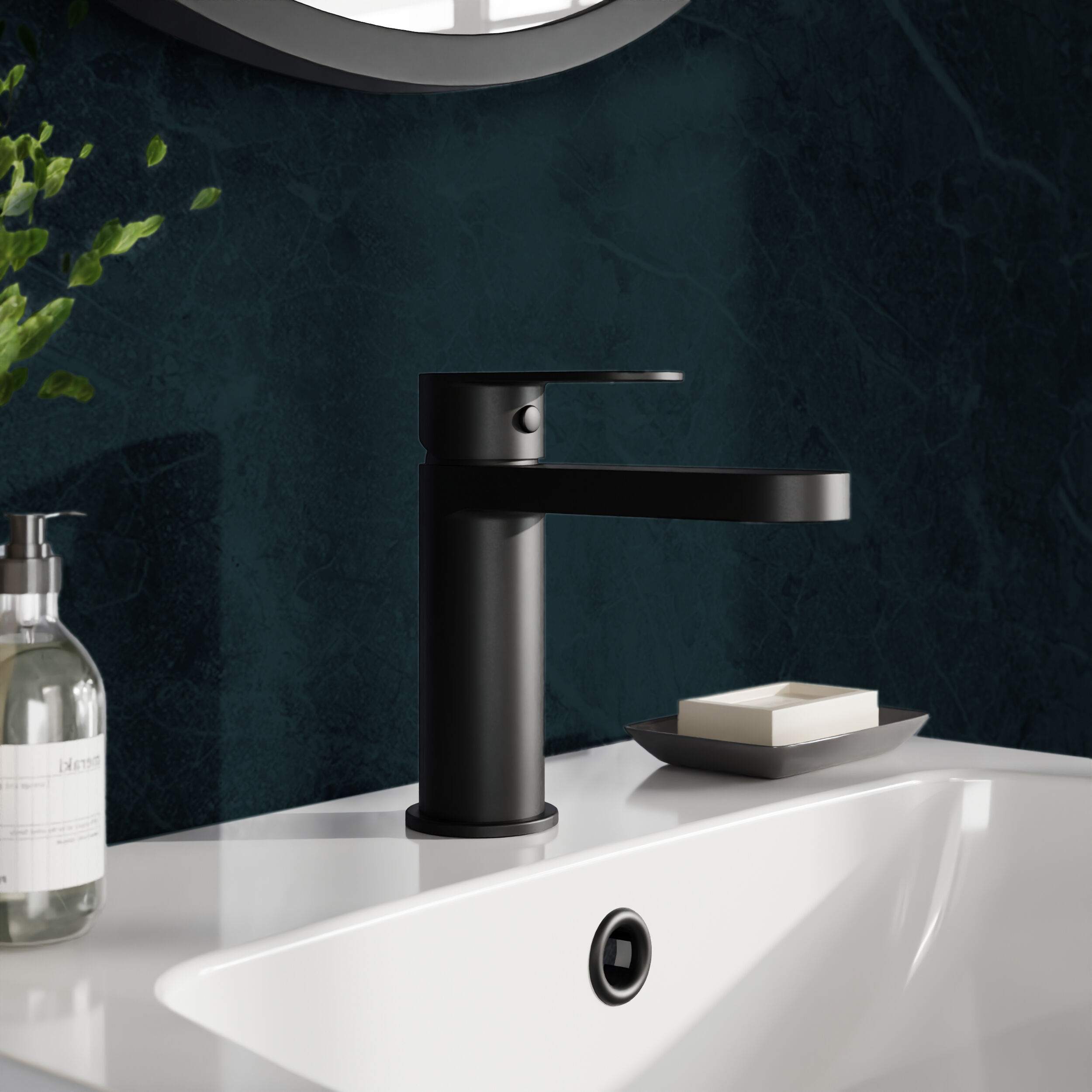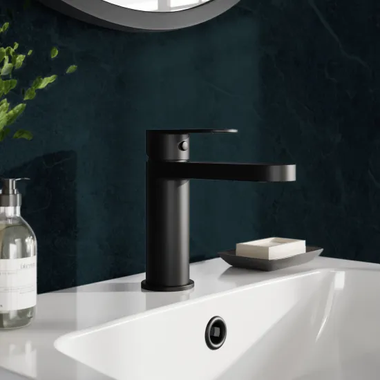 nuie choice Halstatt Mono Basin Mixer With Push Button Waste - Matt Black