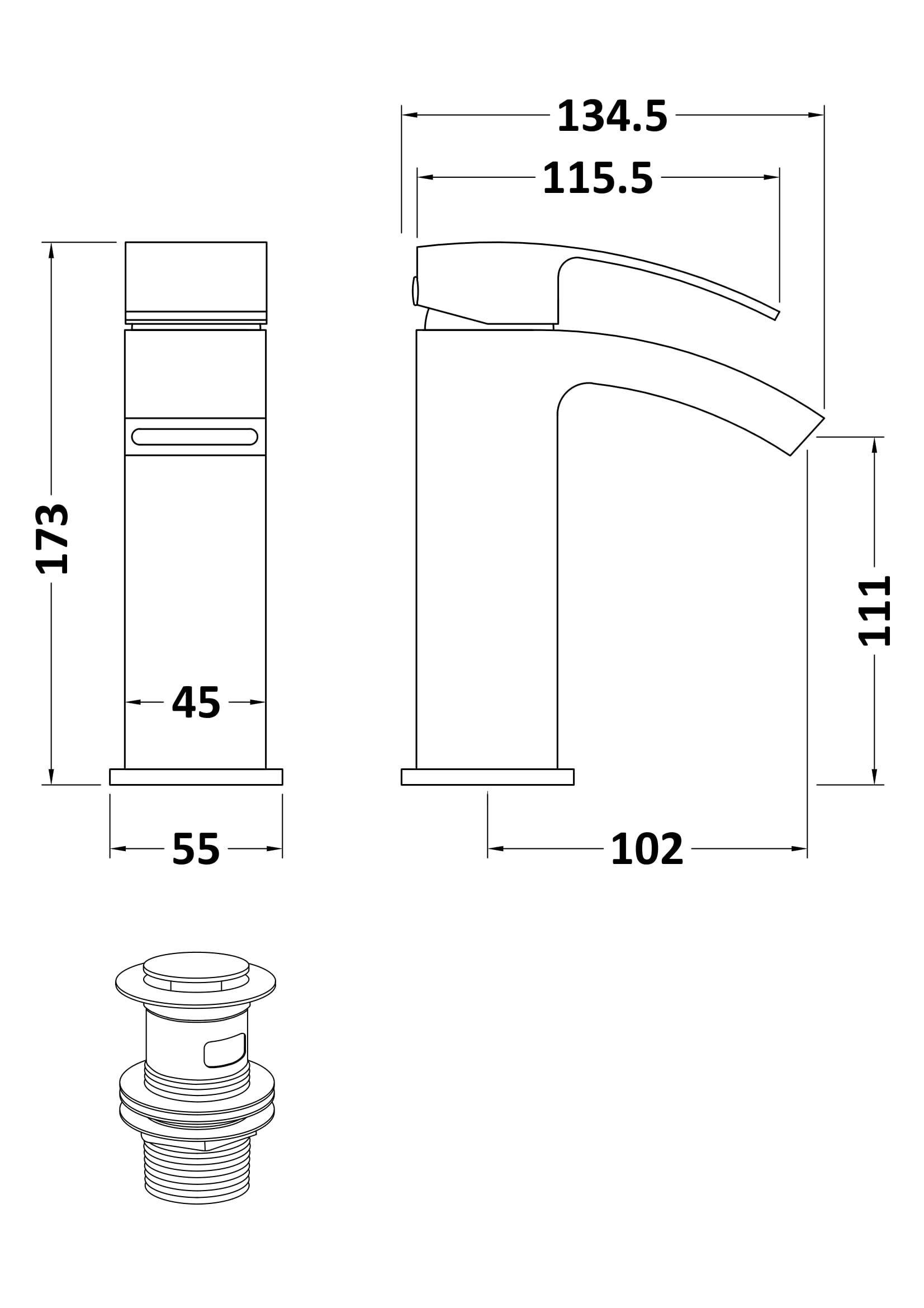 Vibe Mono Basin Mixer With Push Button Waste