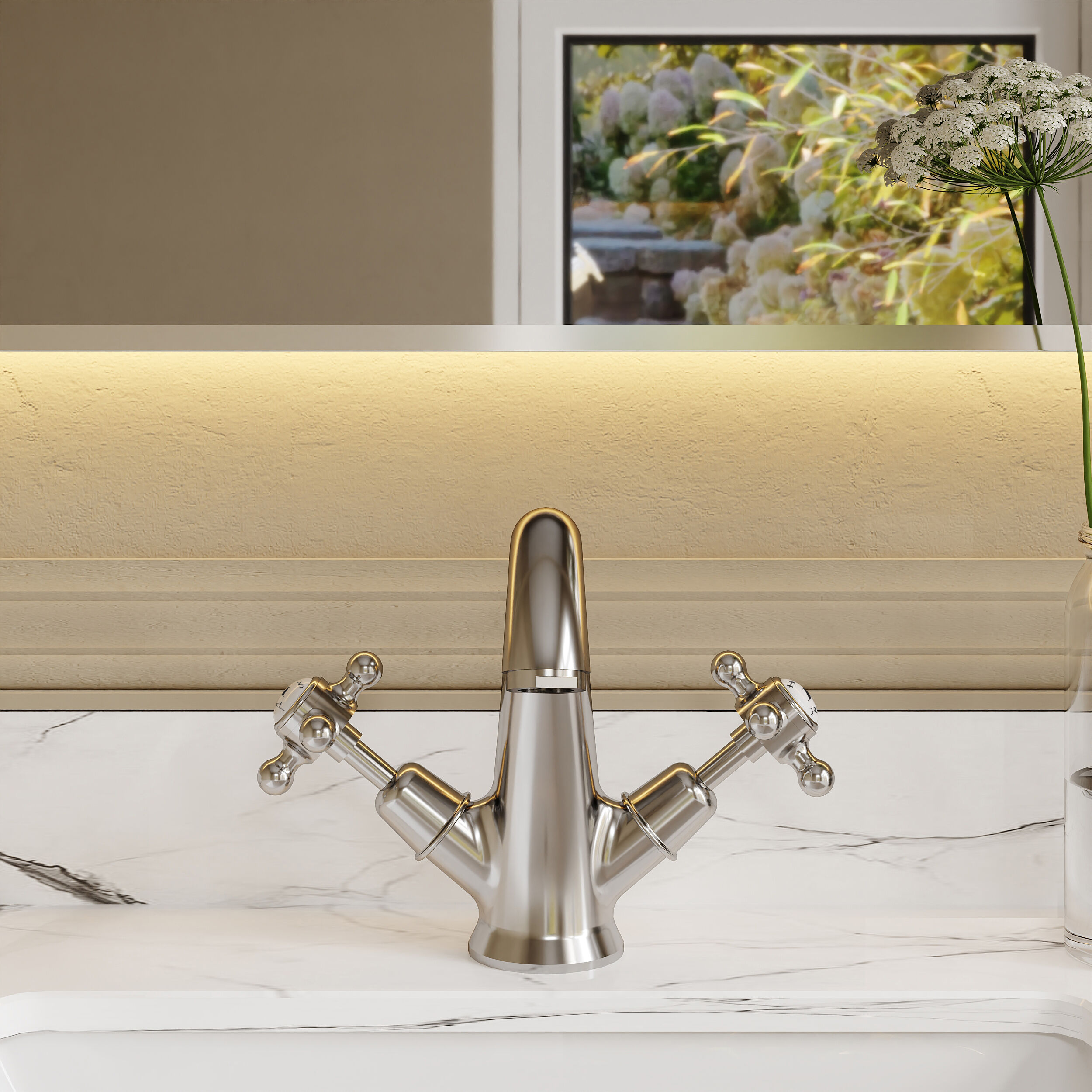 White Topaz With Lever Handle Basin Taps
