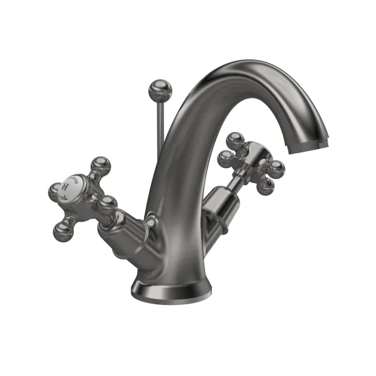 Old London White Topaz With Crosshead Handle Mono Basin Mixer - Brushed Pewter / White