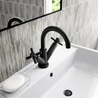 Sidonia Wall Mounted 2 Tap Hole Basin Mixer With Plate - Matt Black