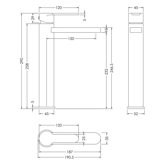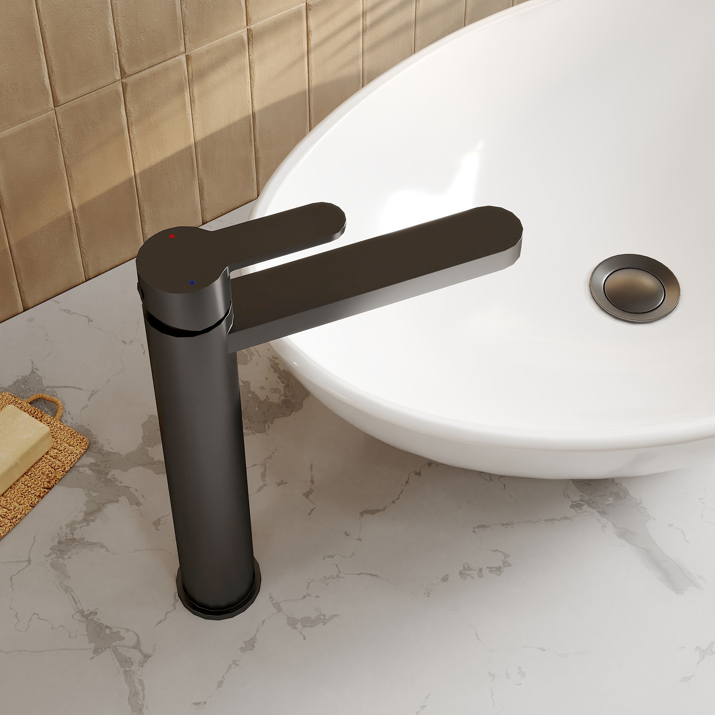 Sleek high-rise design makes this tap perfect for use with countertop vessel basins