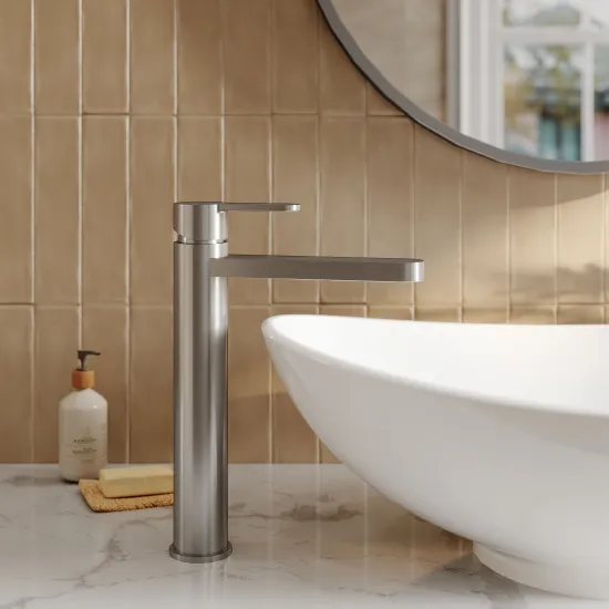 Sleek high-rise design makes this tap perfect for use with countertop vessel basins