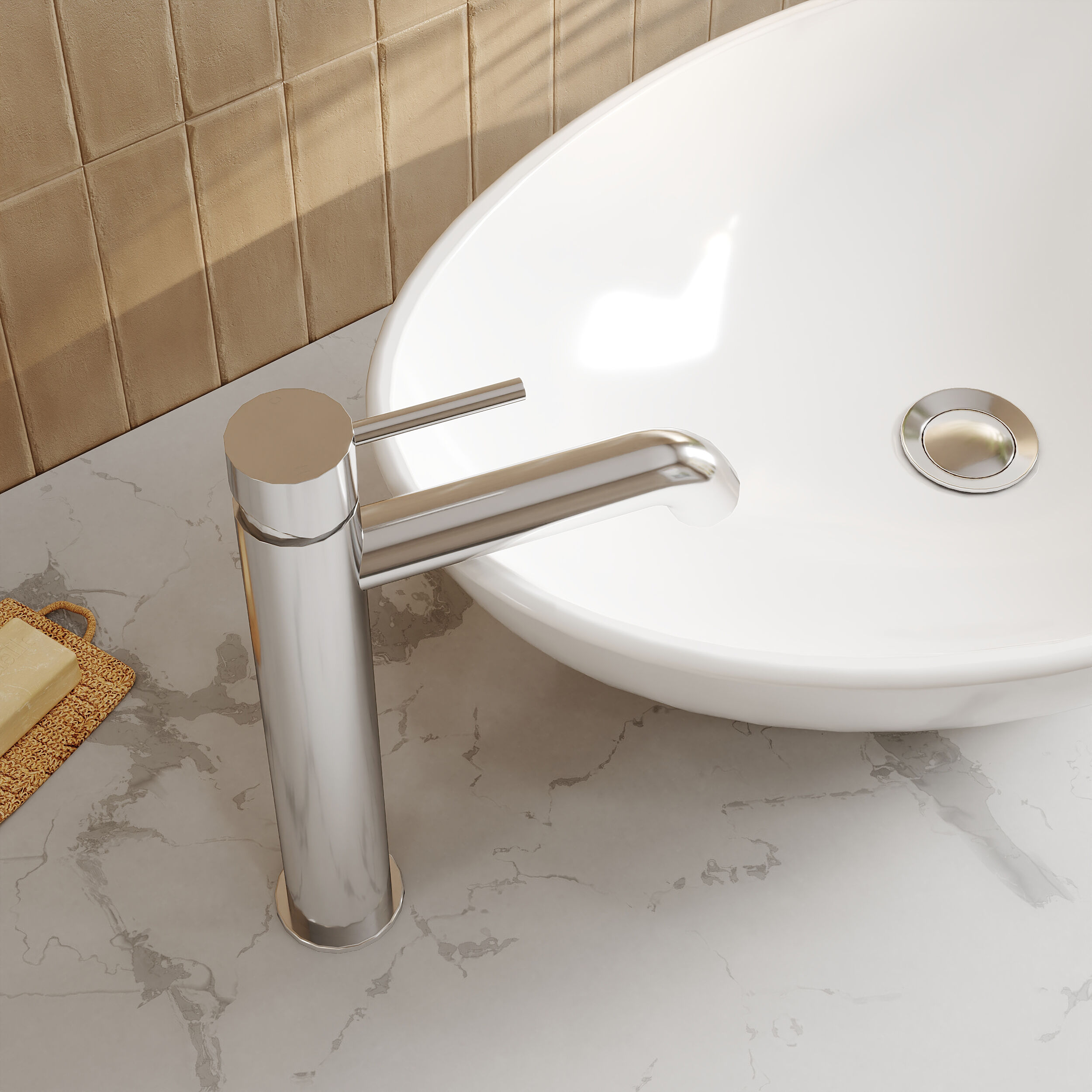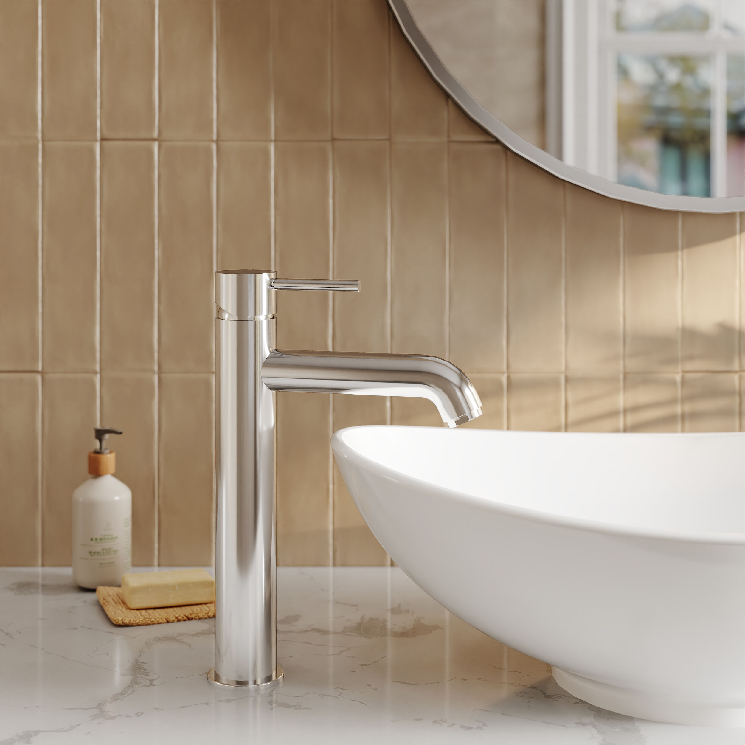 Sleek high-rise design makes this tap perfect for use with countertop vessel basins