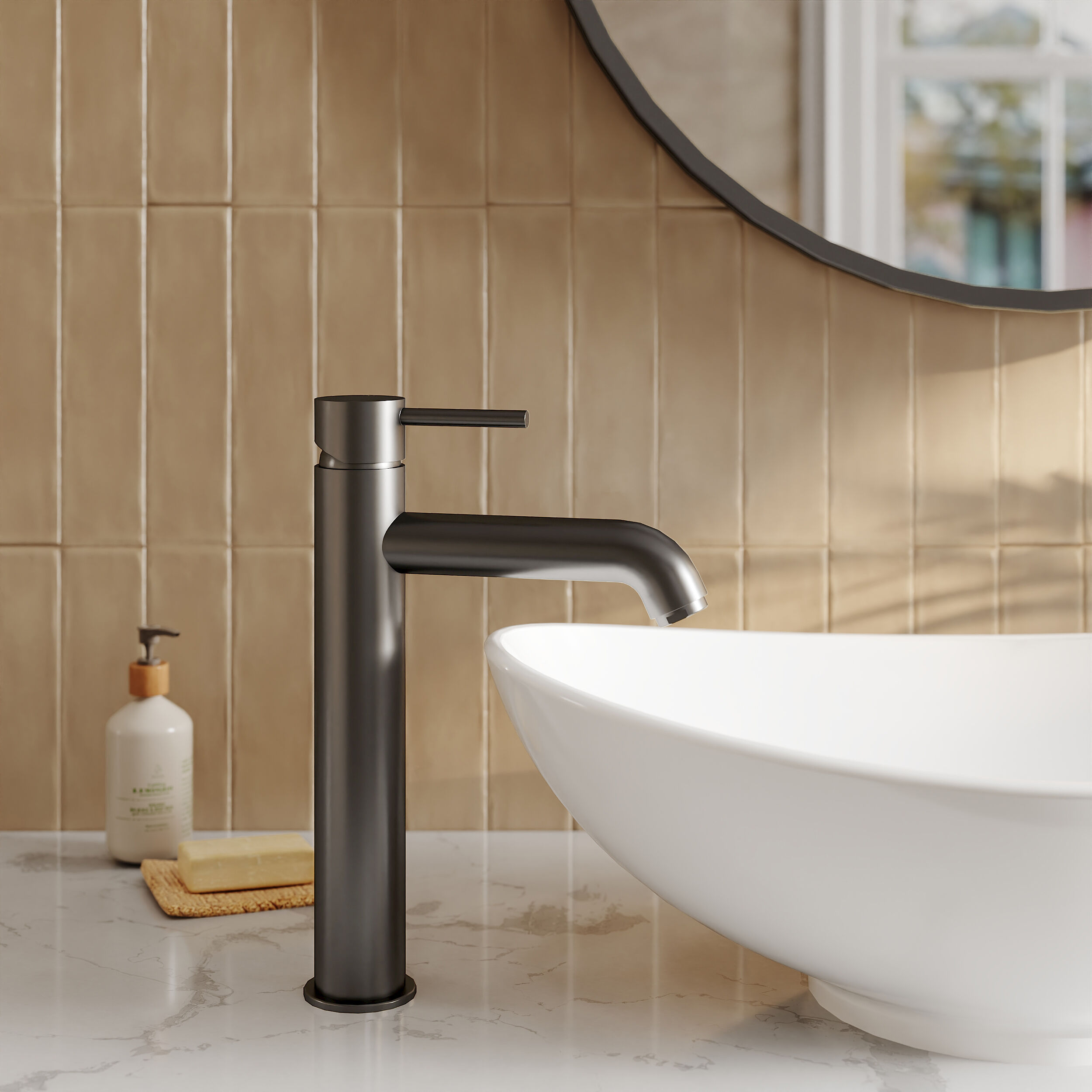 Sleek high-rise design makes this tap perfect for use with countertop vessel basins