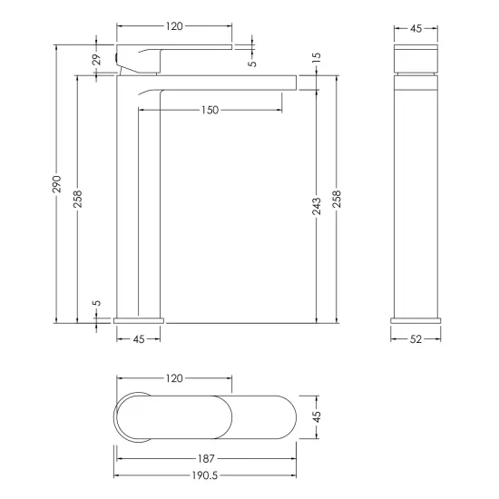 Sleek high-rise design makes this tap perfect for use with countertop vessel basins