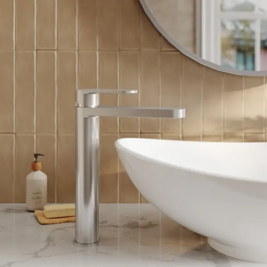 Sleek high-rise design makes this tap perfect for use with countertop vessel basins