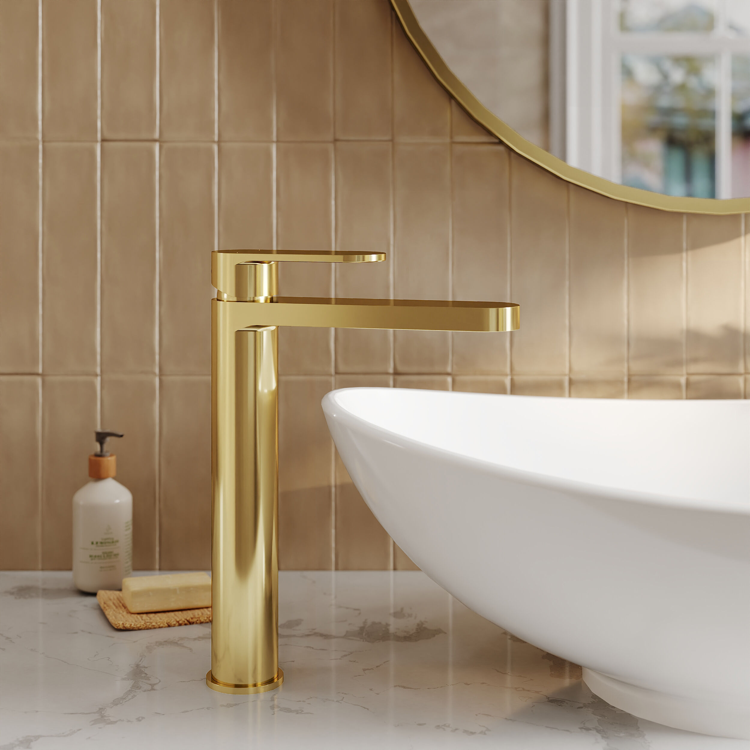 Sleek high-rise design makes this tap perfect for use with countertop vessel basins