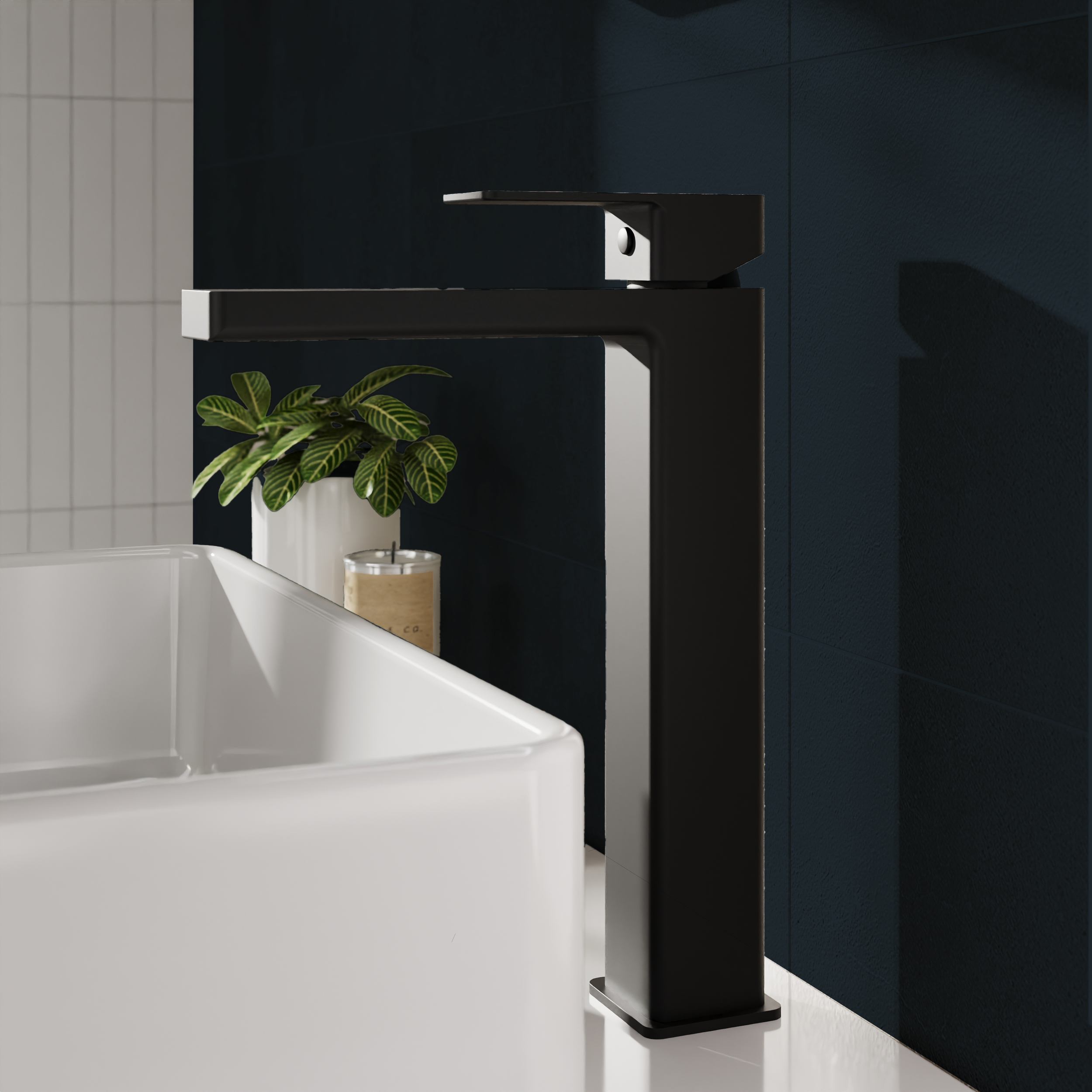 Sleek high-rise design makes this tap perfect for use with countertop vessel basins