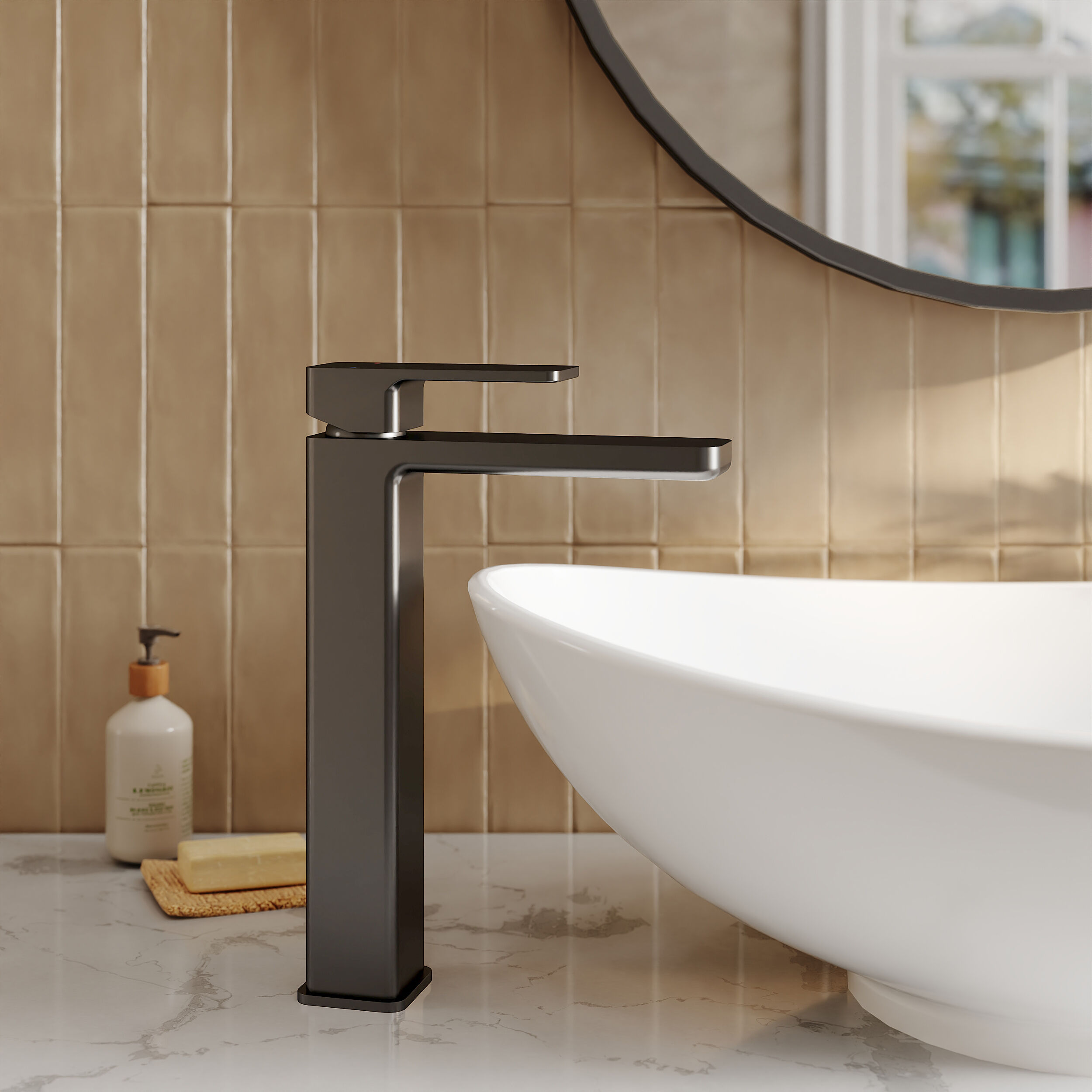 Sleek high-rise design makes this tap perfect for use with countertop vessel basins