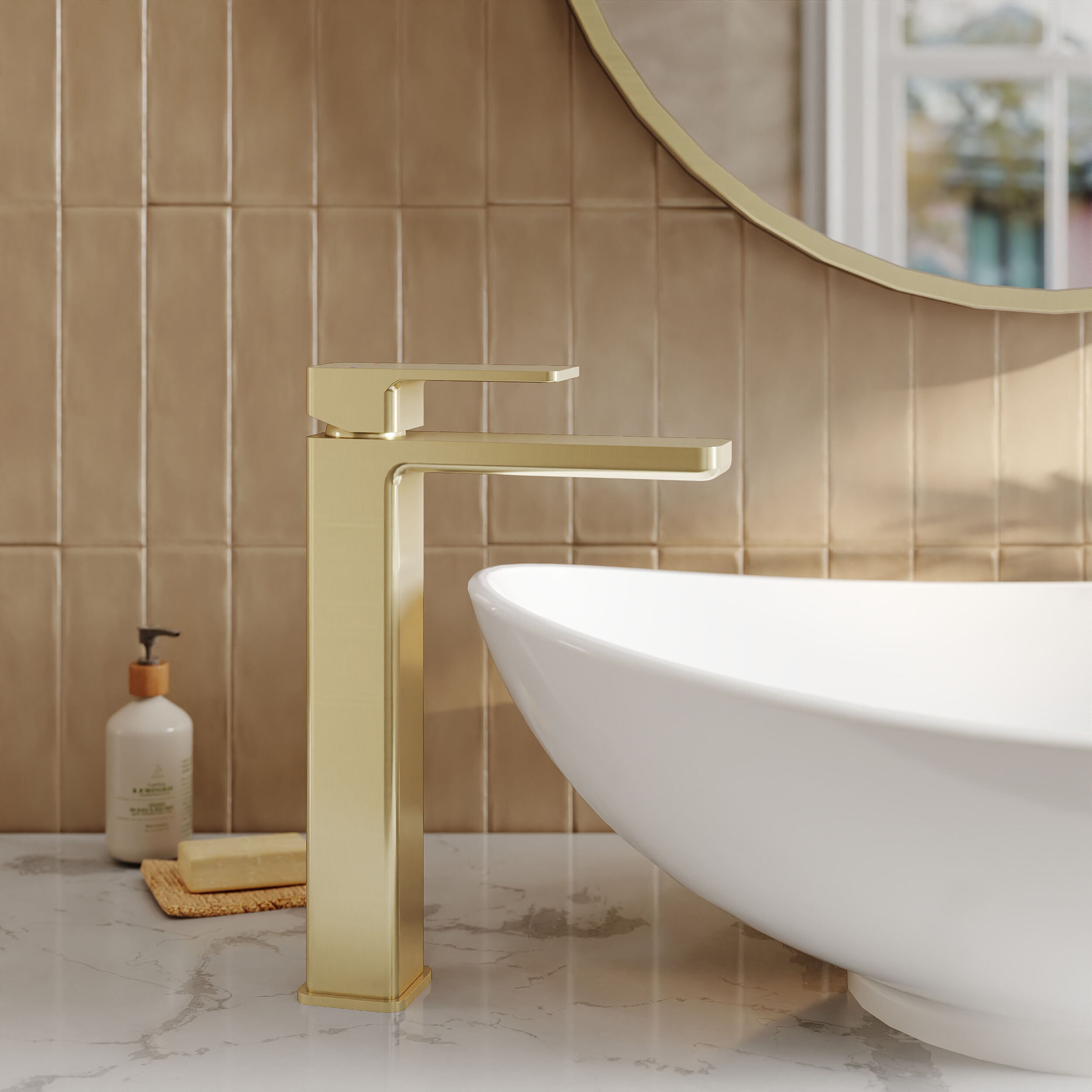 Sleek high-rise design makes this tap perfect for use with countertop vessel basins