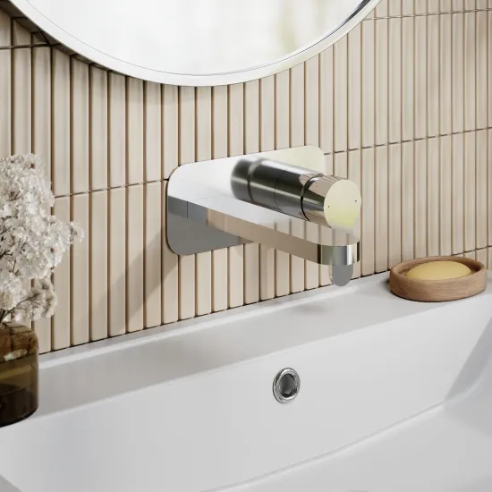 nuie Arvan Wall Mounted 2 Tap Hole Basin Mixer With Plate - Chrome