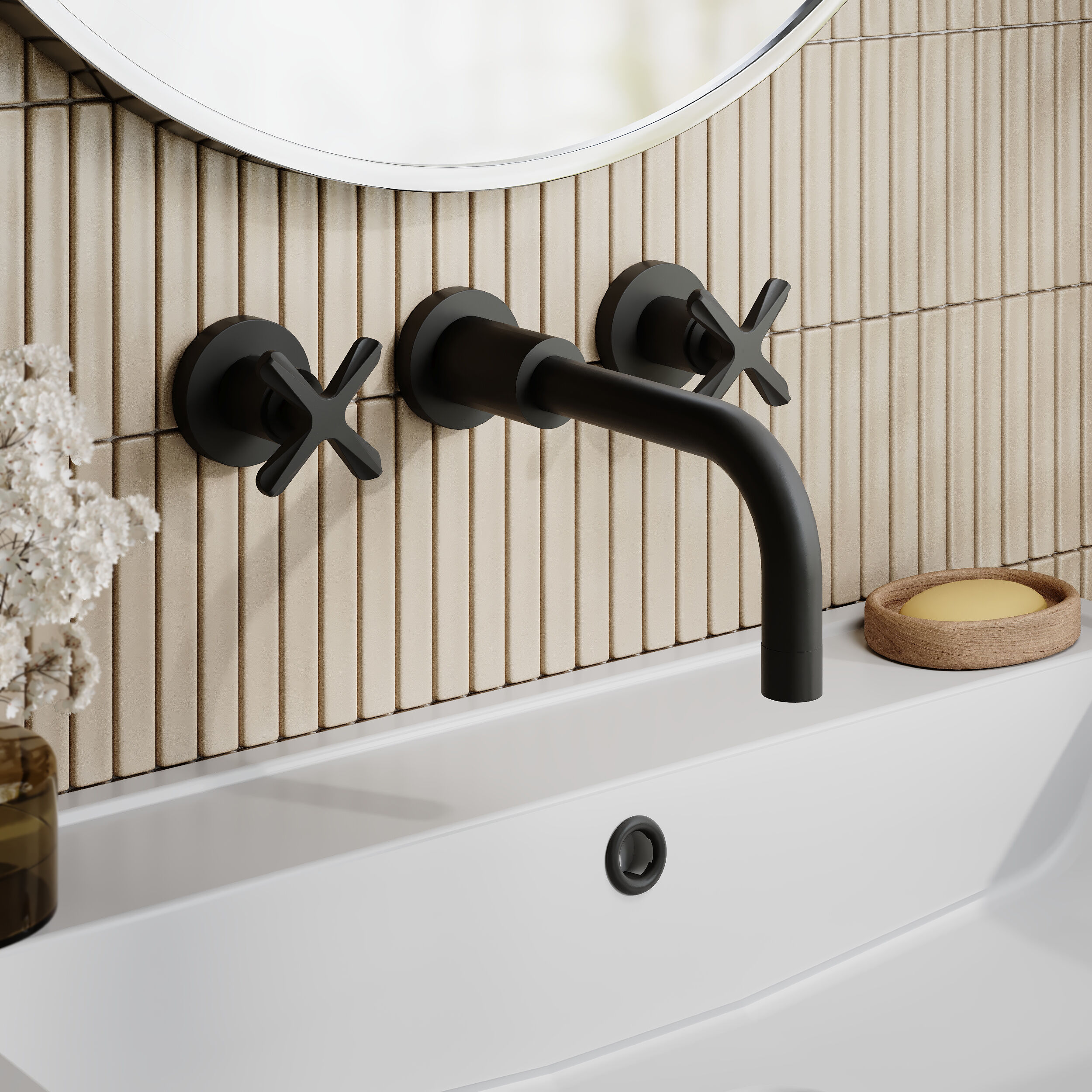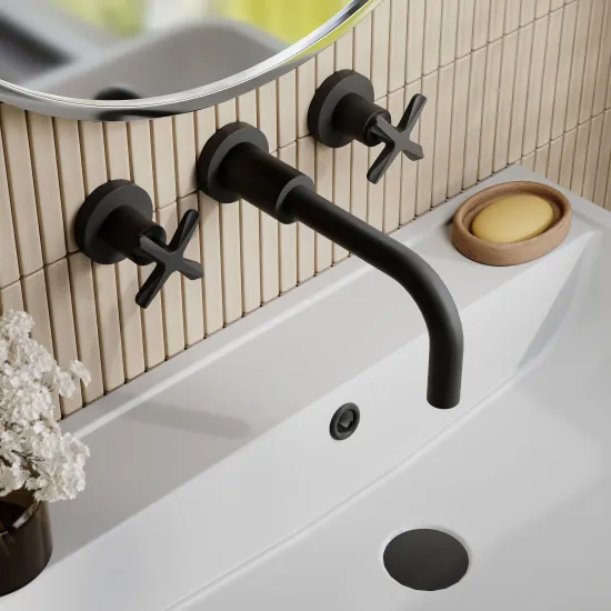 nuie Aztec Wall Mount 3 Tap Hole Basin Mixer - Matt Black