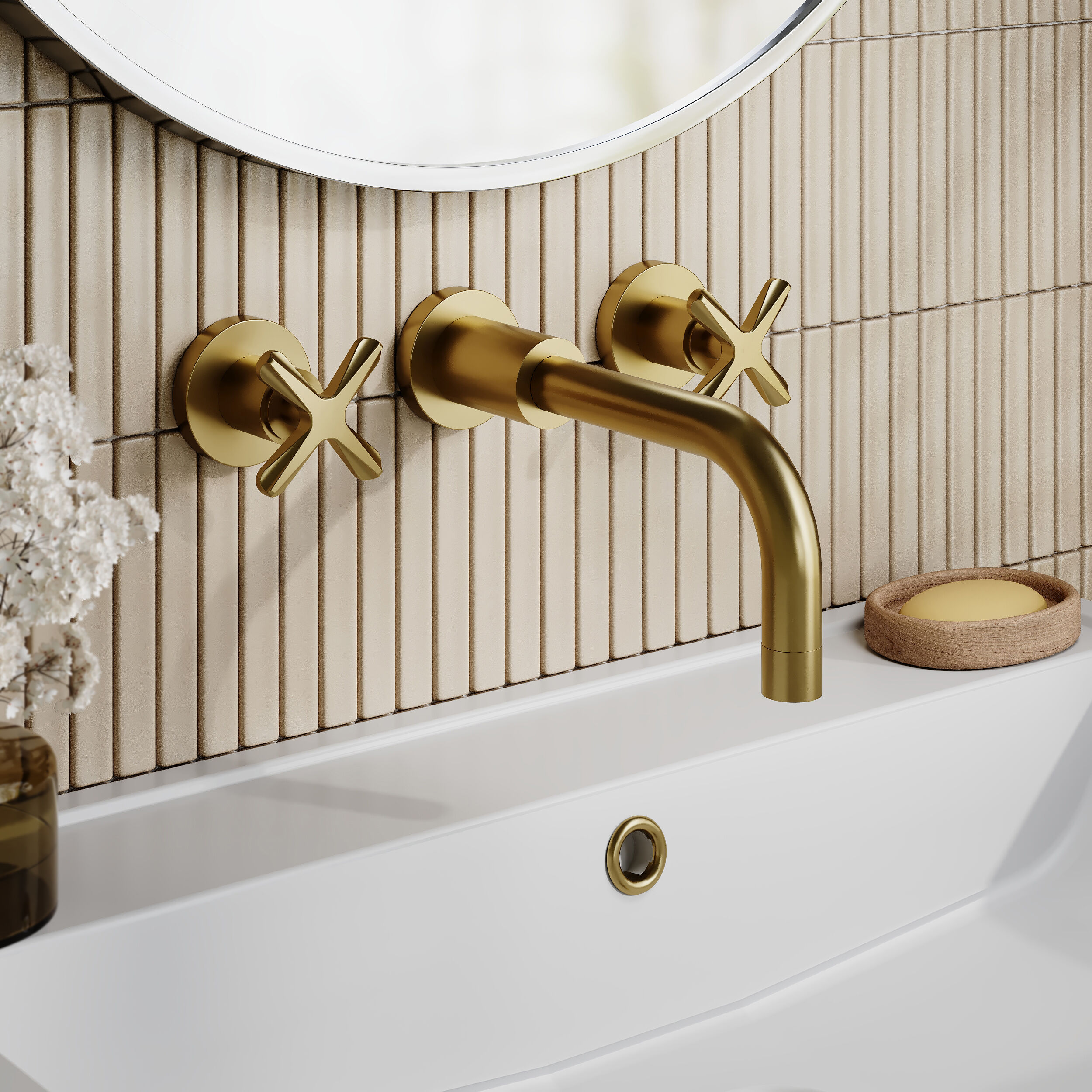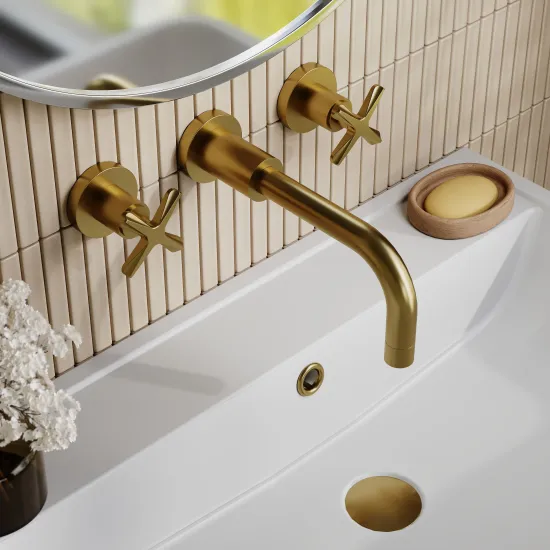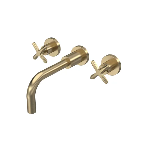 nuie Aztec Wall Mount 3 Tap Hole Basin Mixer - Brushed Brass