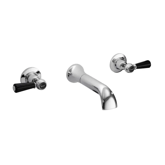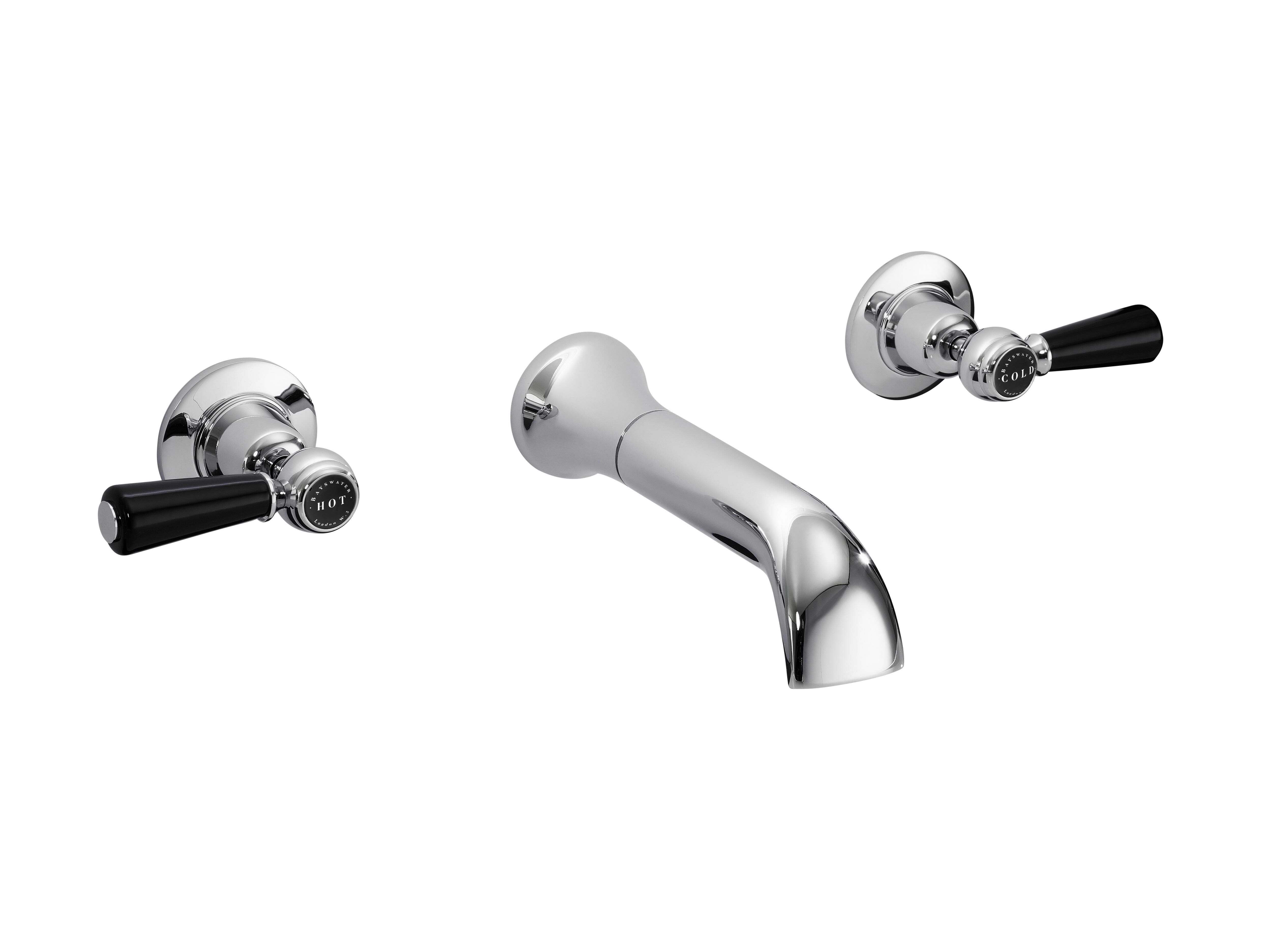 Bayswater 3-Hole Wall Mounted Basin Mixer With Spout Lever & Domed Collar - Chrome