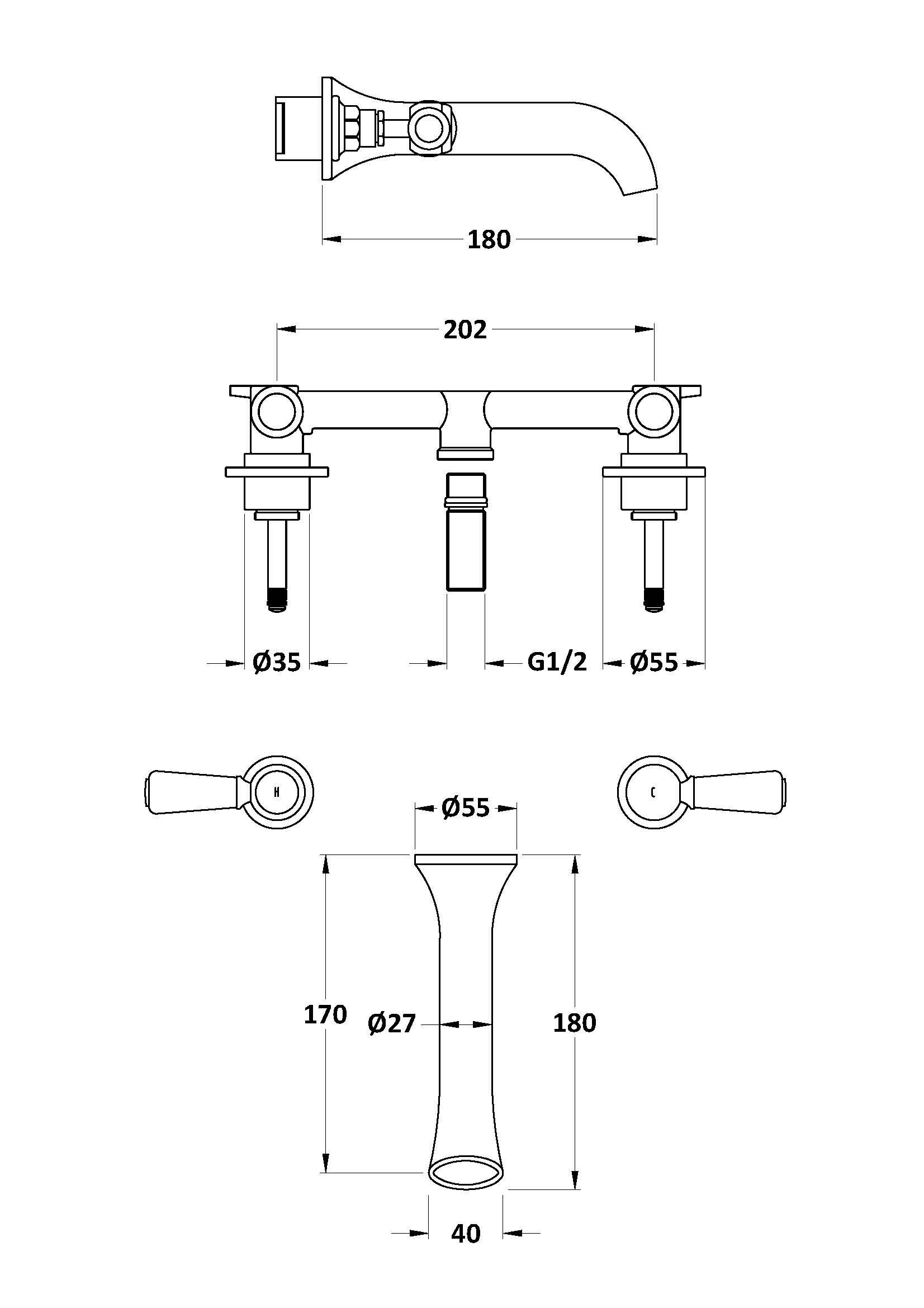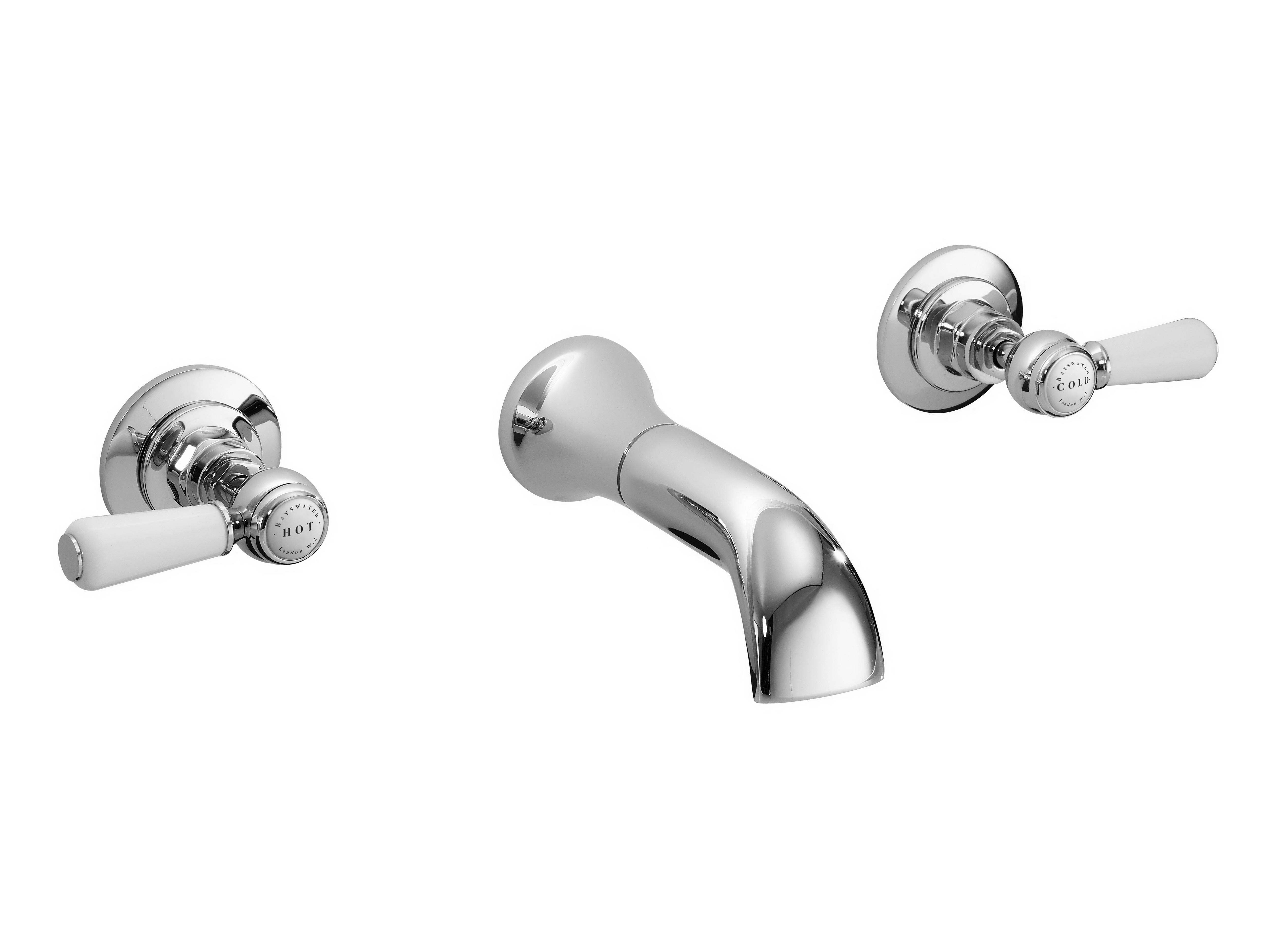Bayswater 3-Hole Wall Mounted Basin Mixer With Spout Lever & Hex Collar