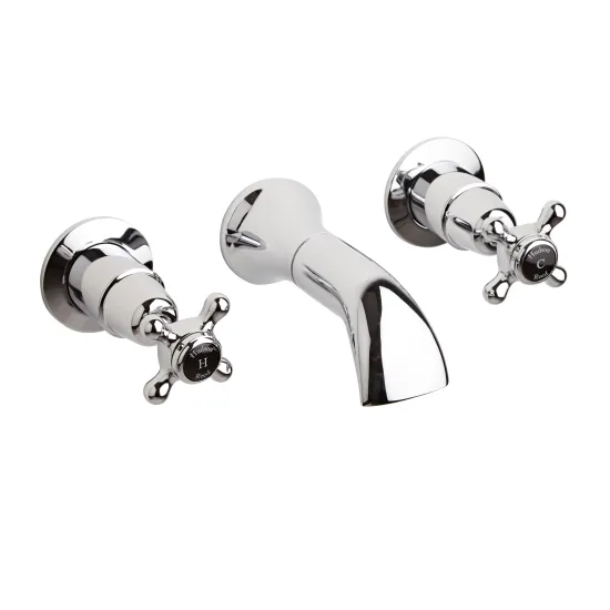 Old London Black Topaz With Crosshead Handle 3 Tap Hole Wall Mounted Basin Mixer - Chrome