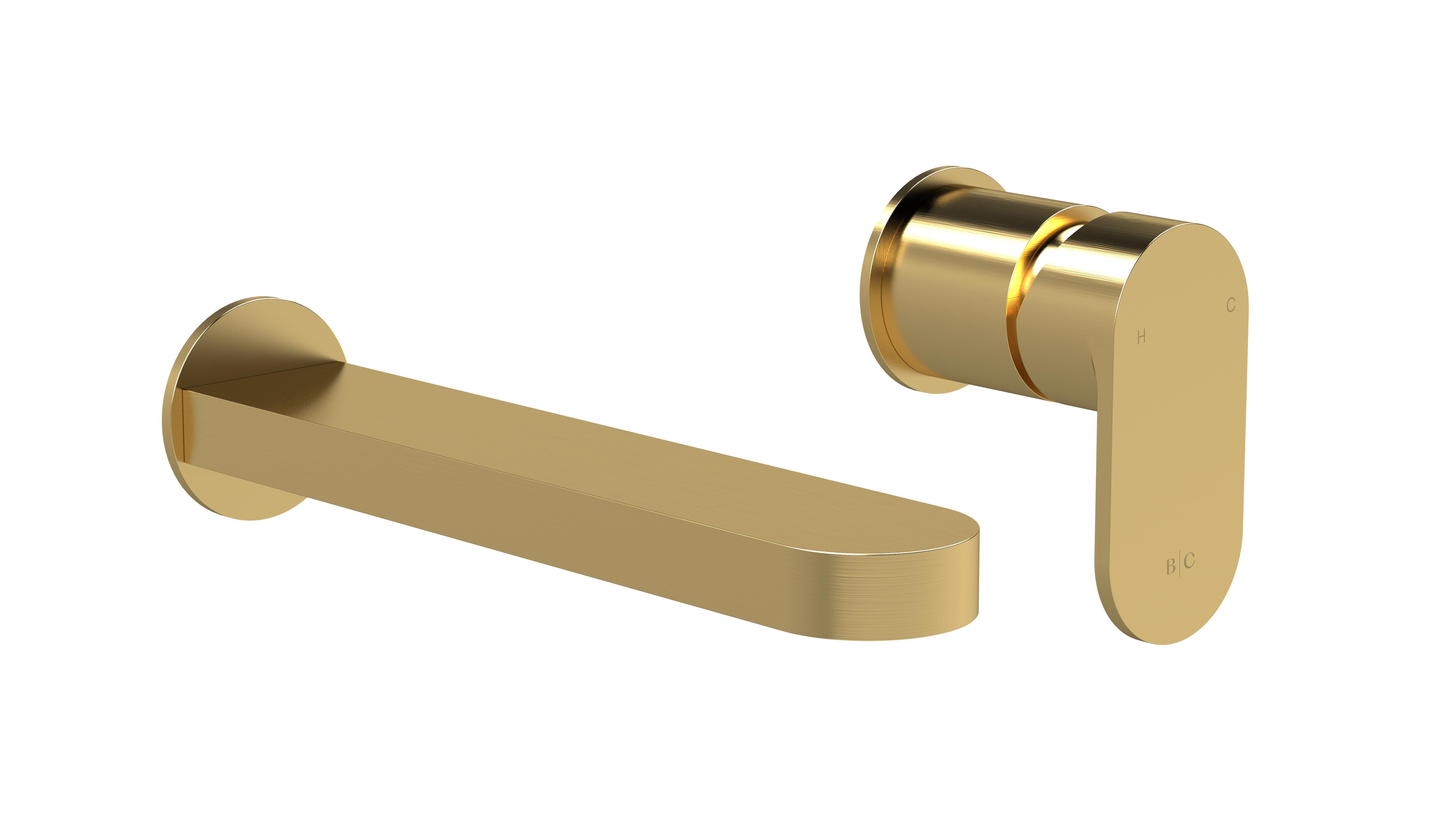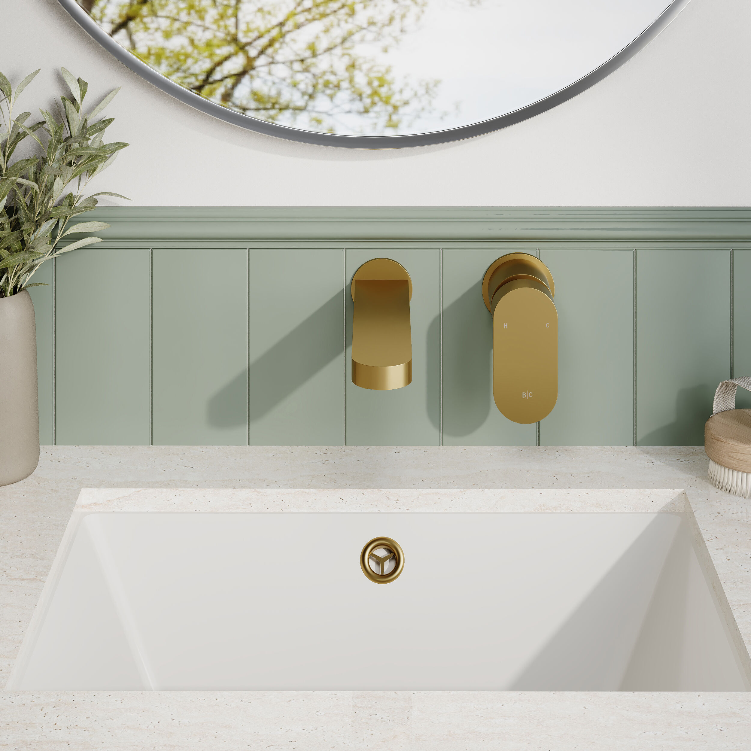 BC Designs Chelmsford Wall Mounted 2 Tap Hole Basin Mixer - Brushed Gold