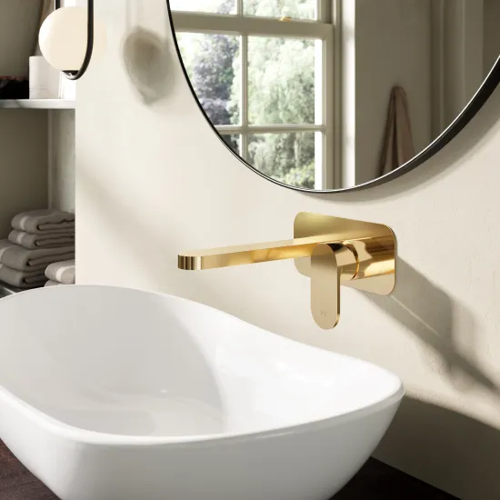 BC Designs Chelmsford Wall Mounted 2 Tap Hole Basin Mixer With Plate - Gold